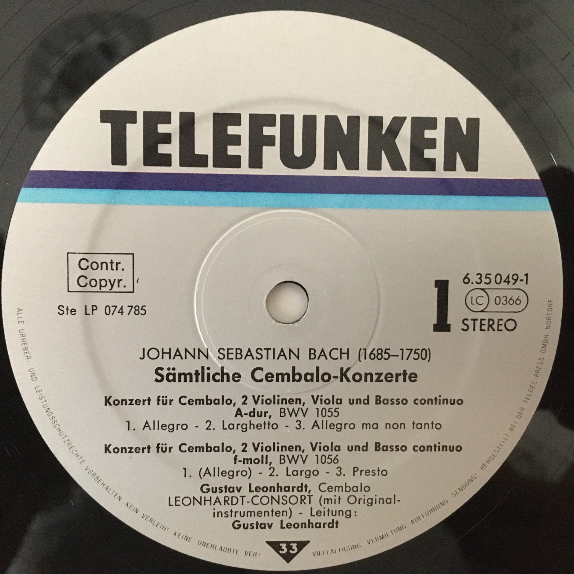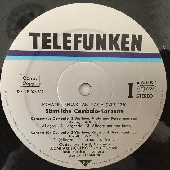 C537 Bach Complete Harpsichord Concertos Leonhardt 5LP Telefunken 6.35049 Stereo