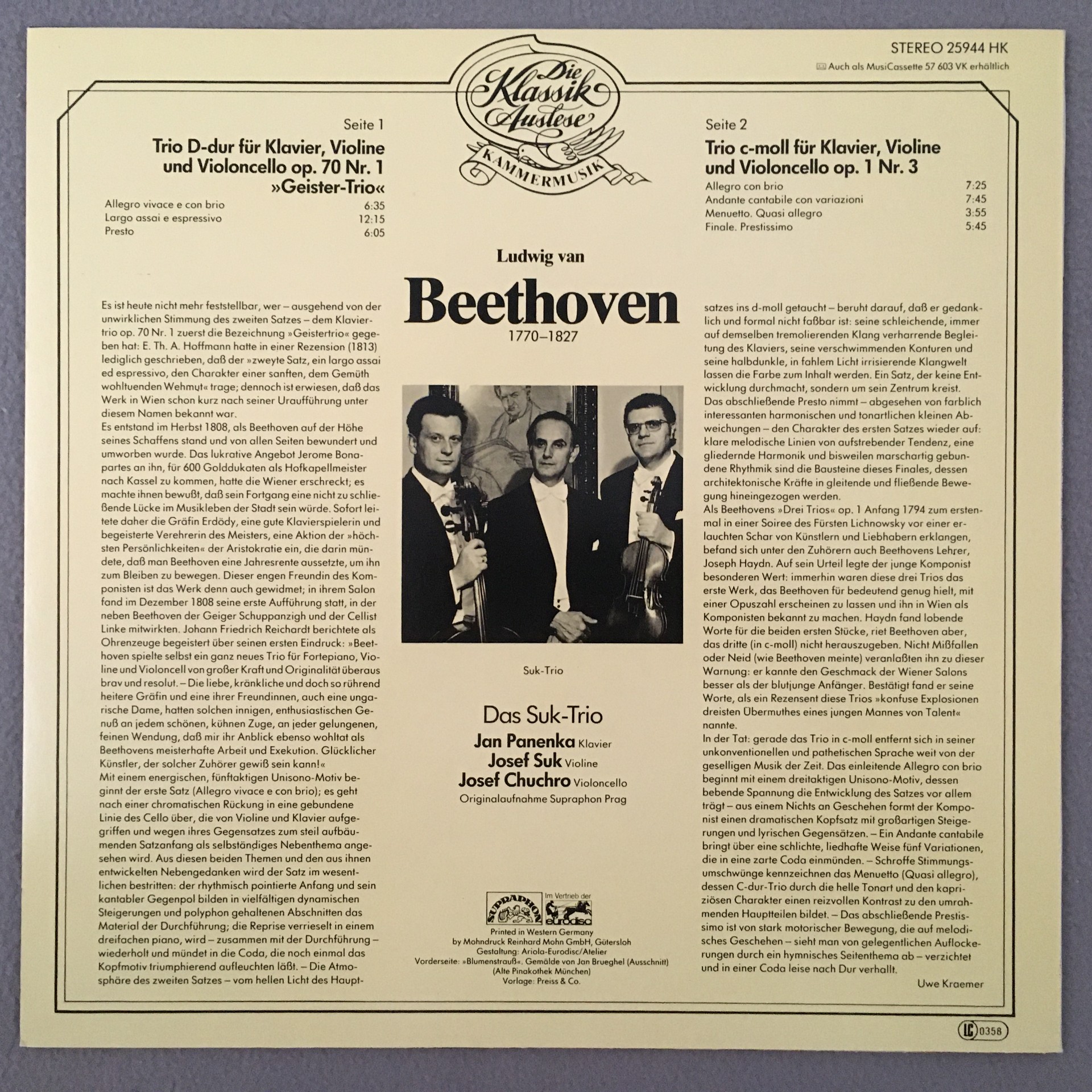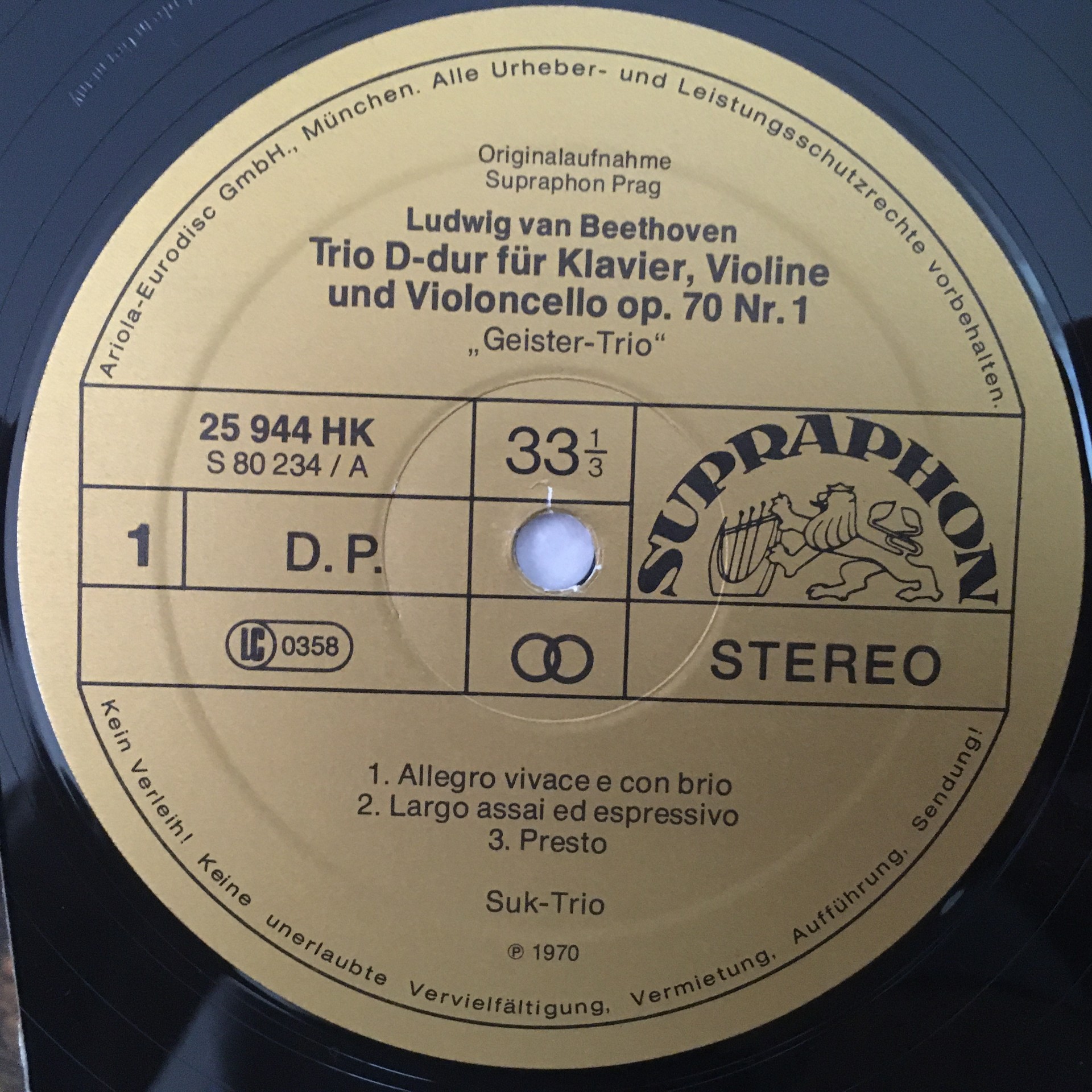 R546 Beethoven Piano Trio Suk Trio Supraphon 25944 HK Stereo