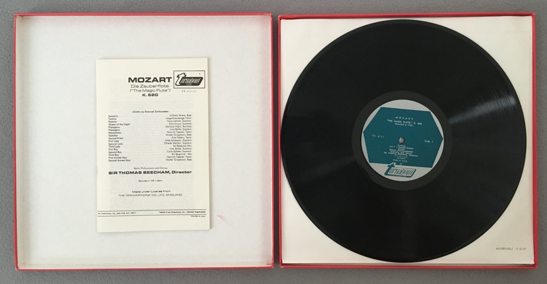 C554 Mozart The Magic Flute Strienz Roswaenge Beecham 3LP Turnabout TV 4111-13