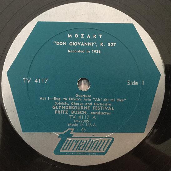 C558 Mozart Don Giovanni Glynderbourne 1936 Busch 3LP Turnabout TV 4117-19