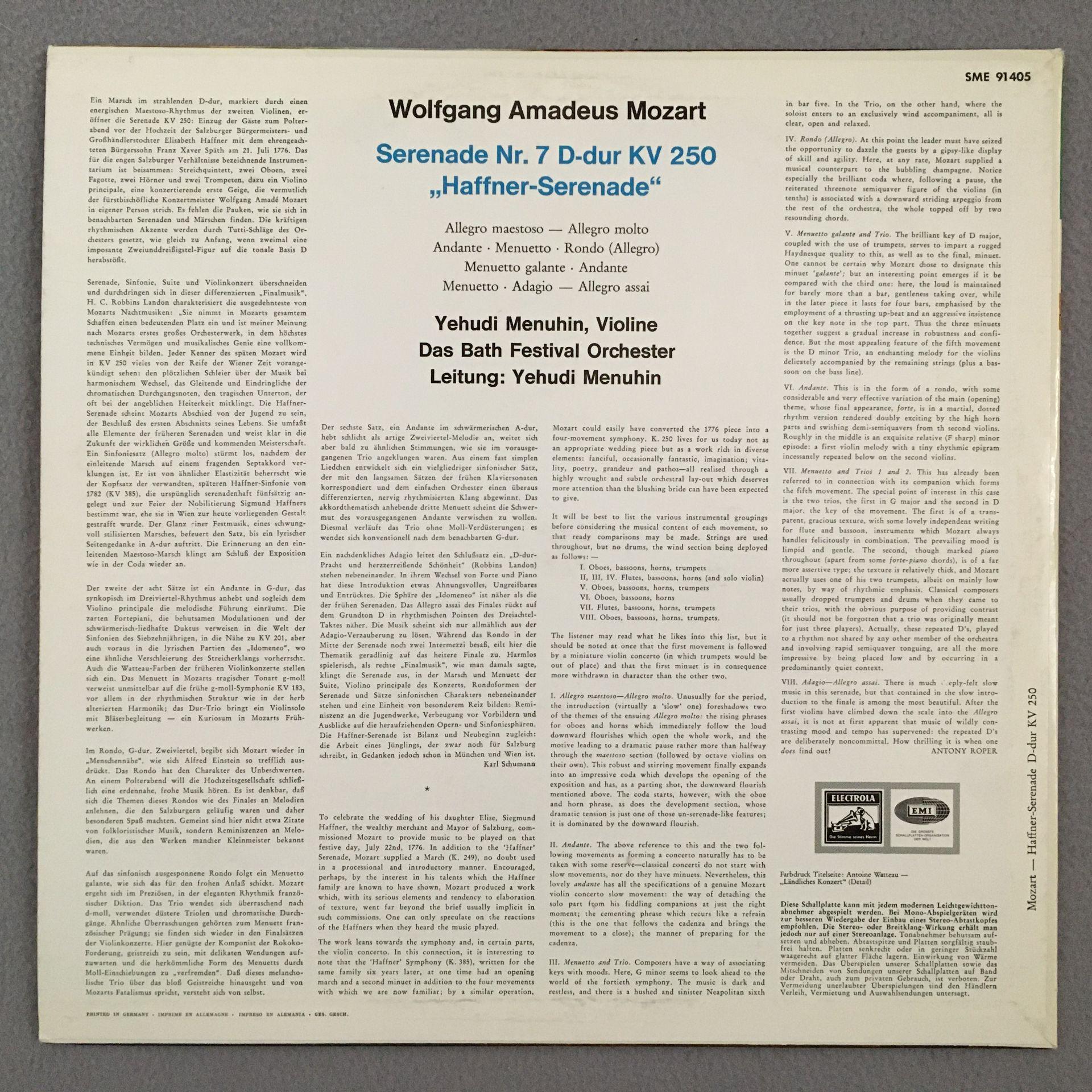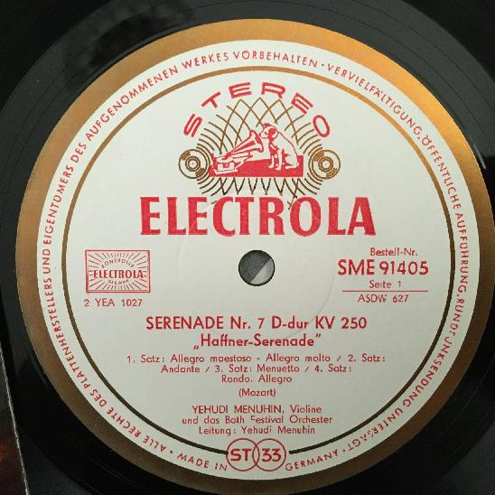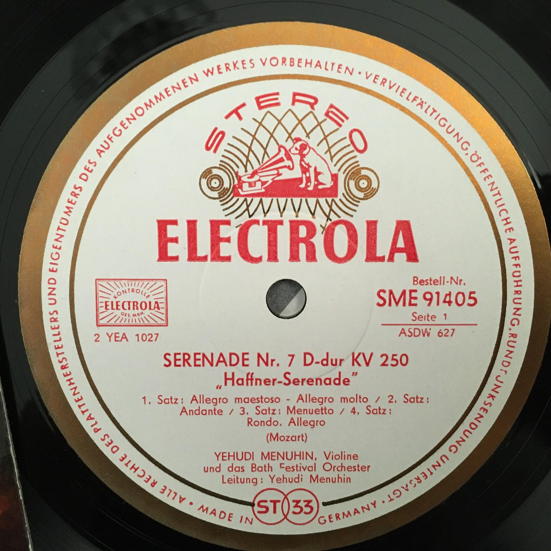 P147 Mozart Serenade No.7 Menuhin Electrola w/g SME 91 405 Stereo