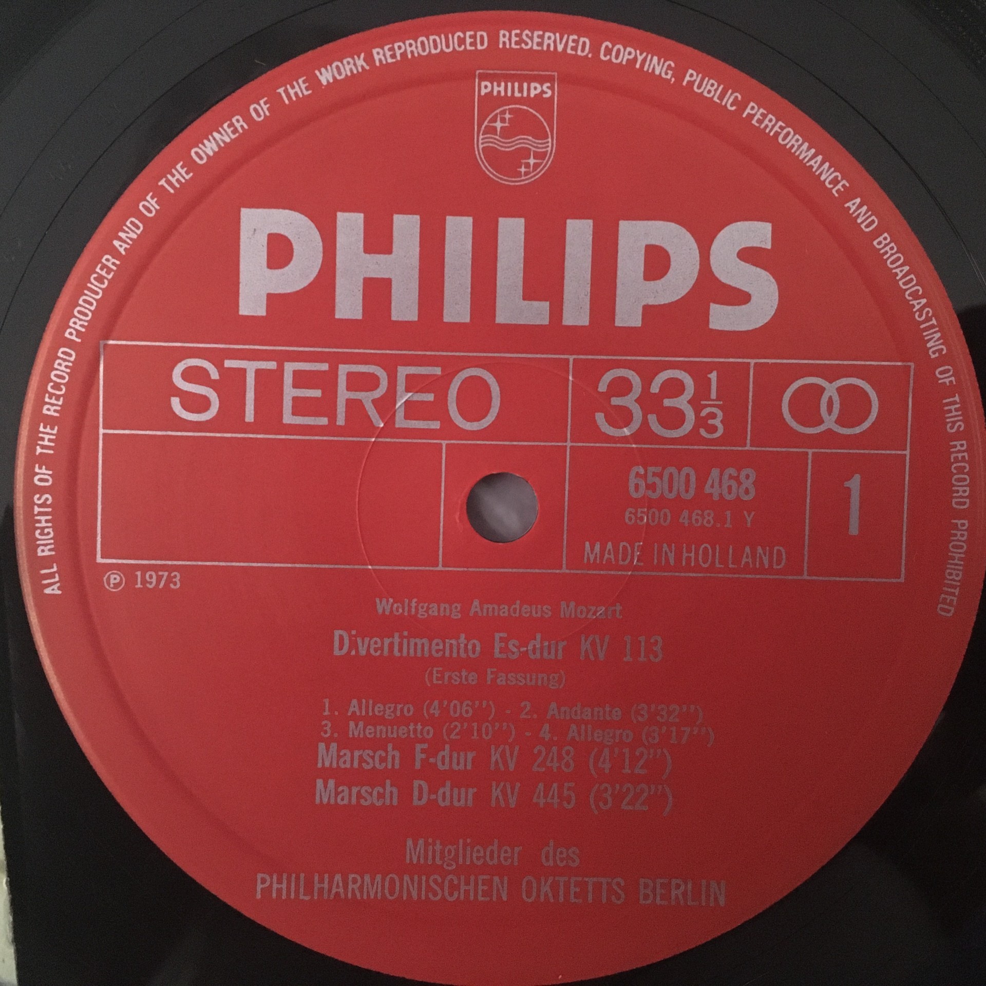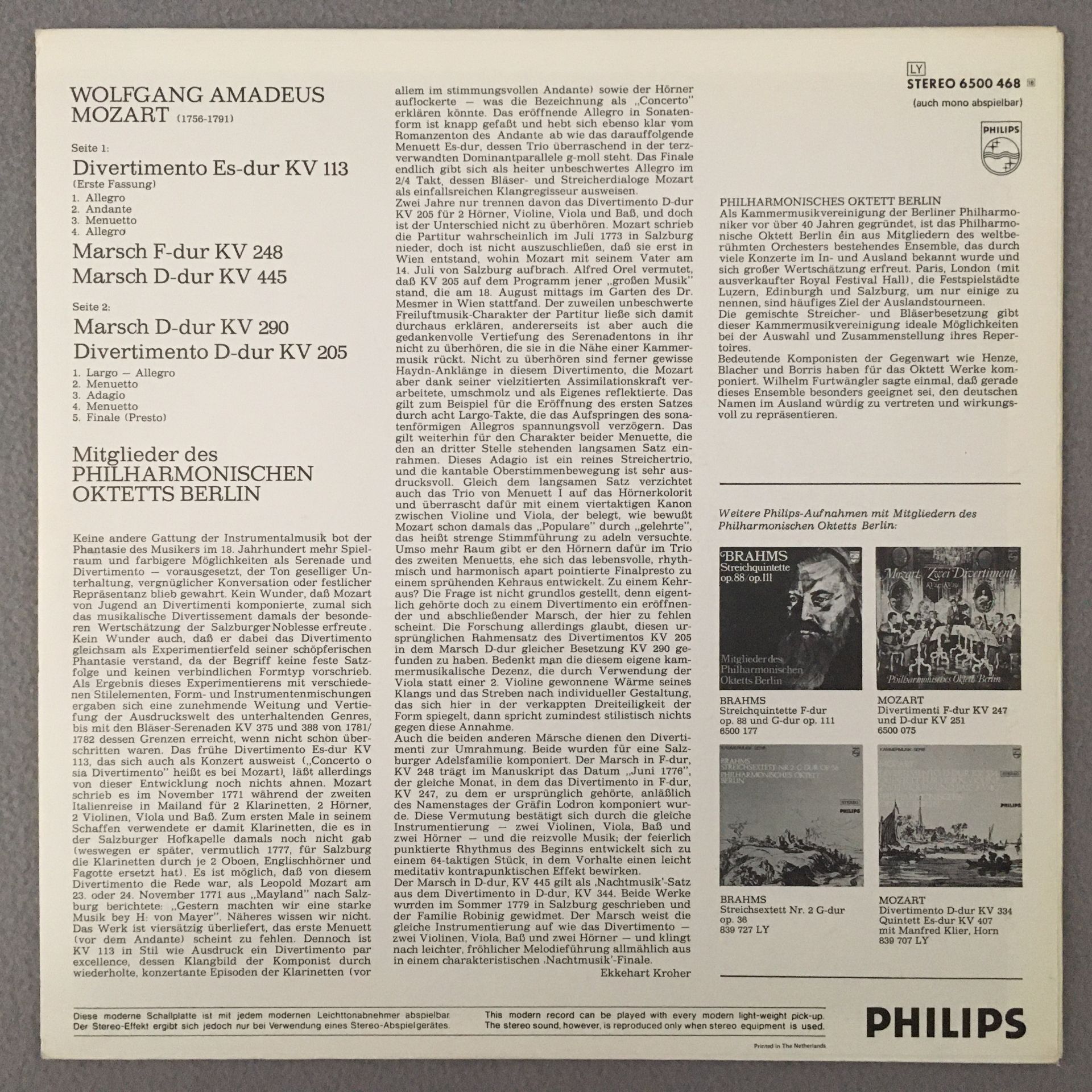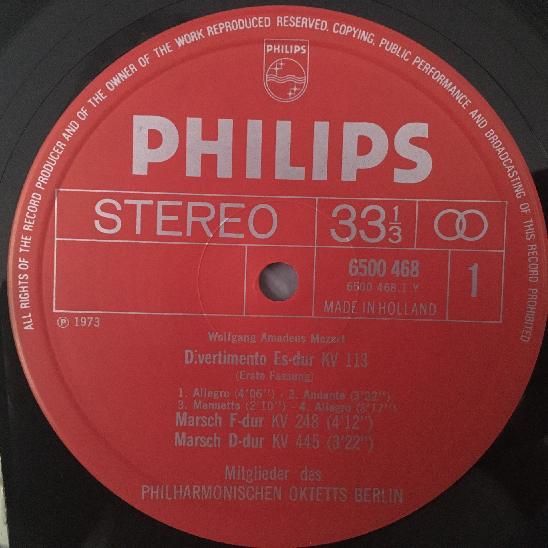 R553 Mozart Divertimenti Marches BPO Octet Philips 6500 468 Stereo