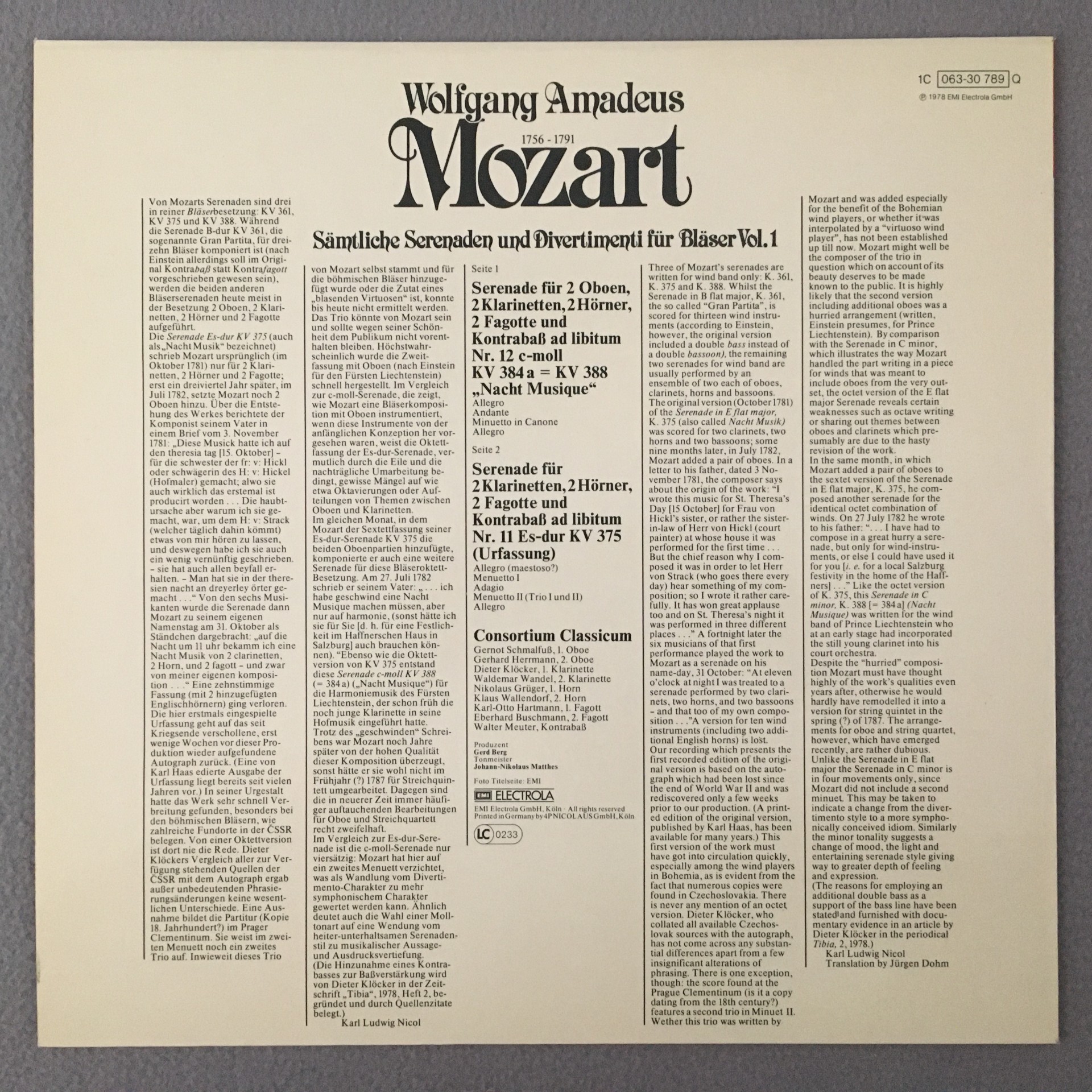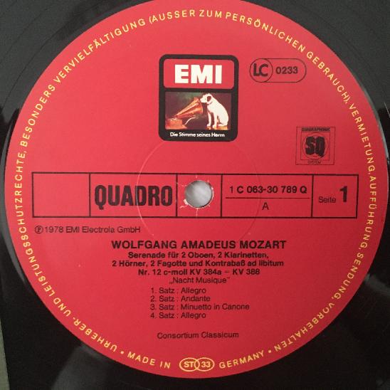 R563 Mozart Wind Serenades Consortium Classicum EMI 1C 063-30 789 Q Quadro