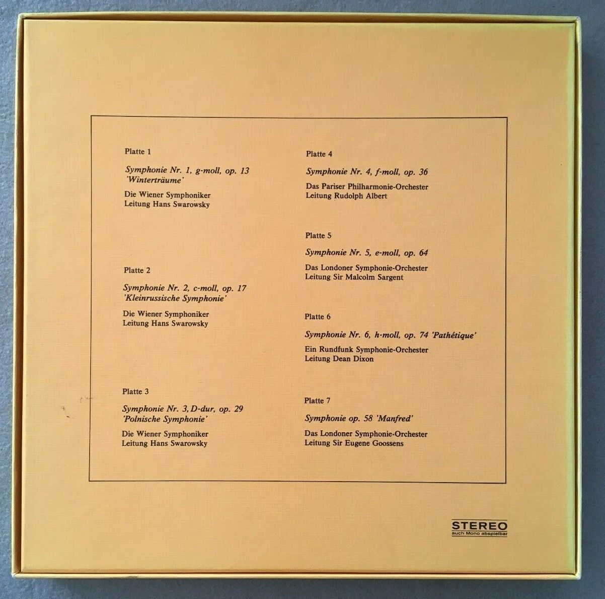 B664 Tchaikovsky 7 Symphonies Swarovsky VSO Sargent LSO 7LP KAT 76.002/1-7Stereo