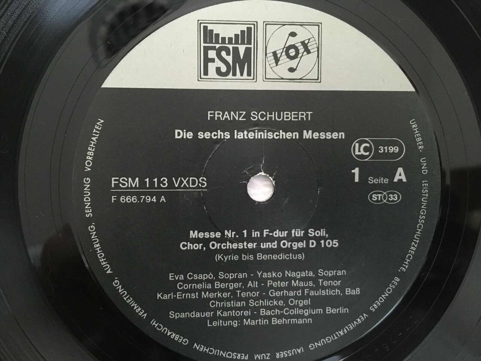 B674 Schubert The 6 Latin Masses Eva Csapo Behrmann 4LP VOX FSM 113 VXDS Stereo