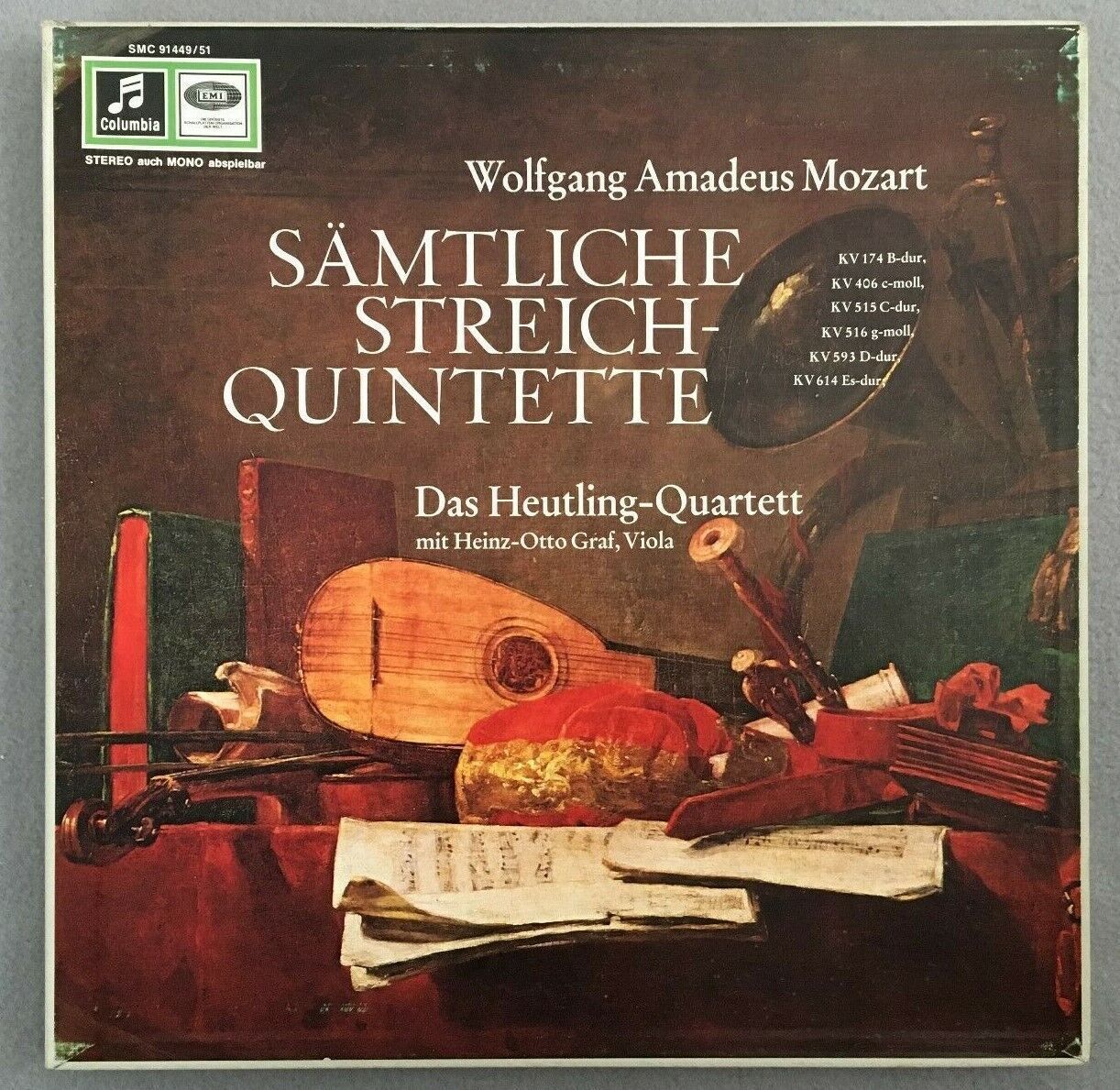 B692 Mozart Complete String Quintets Heutling 3LP Columbia w/g SMC 91449/51 Ster