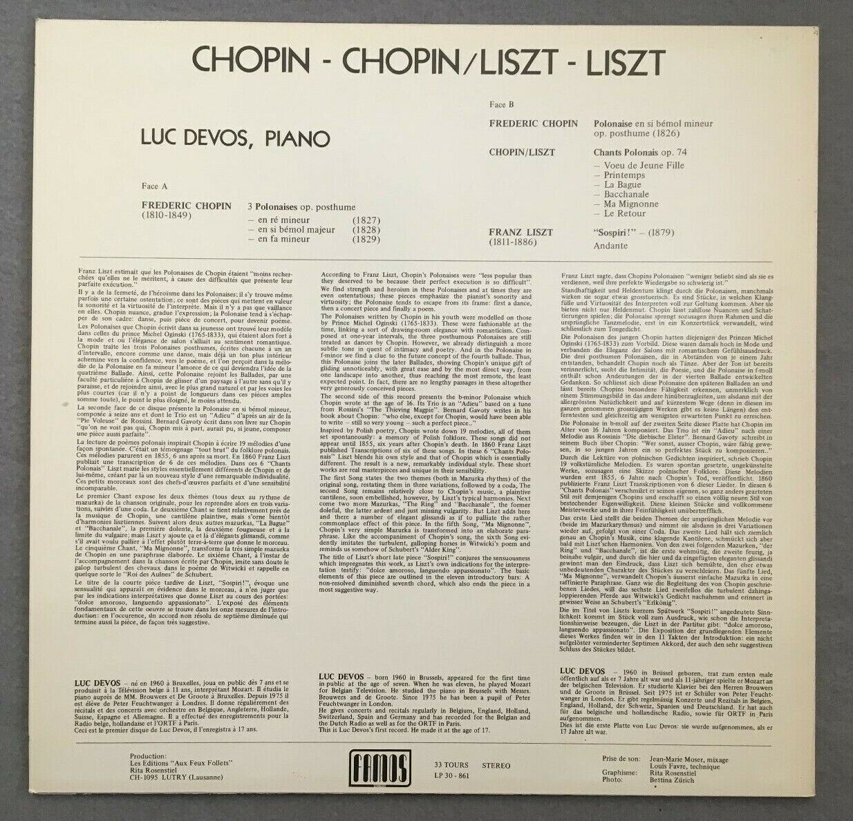 P252 Chopin Liszt Polonaises Luc Devos Piano Famos LP30-861 Stereo