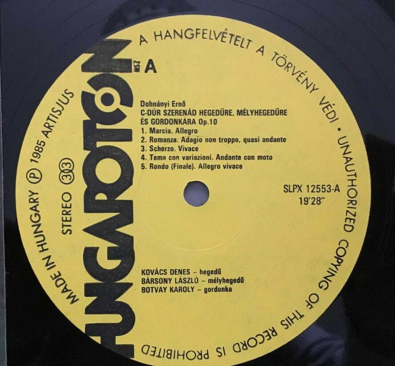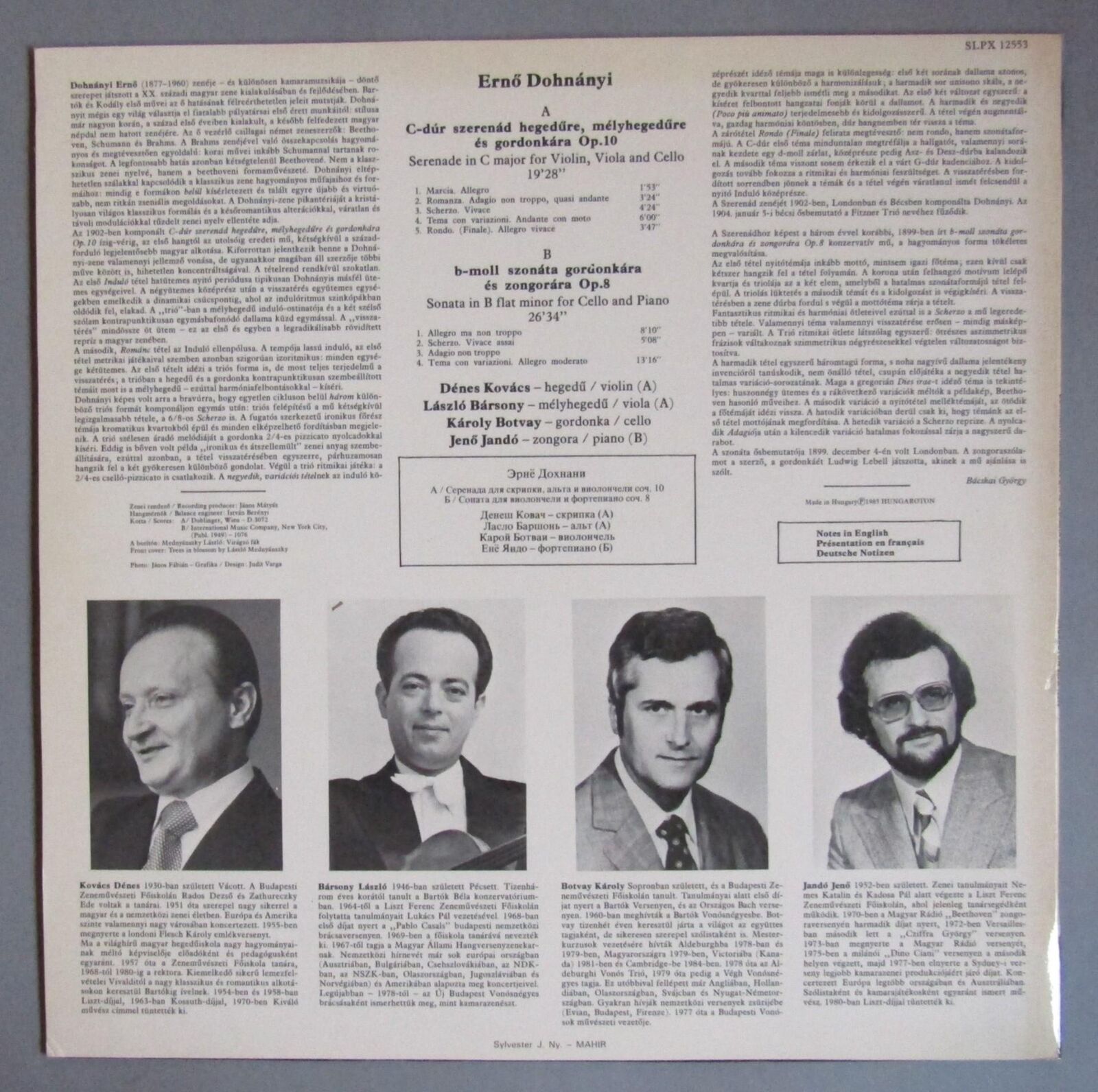 P237 Dohnanyi Serenade Op.10 Sonata Op.8 Kovacs Botvay Hungaroton SLPX 12553 St