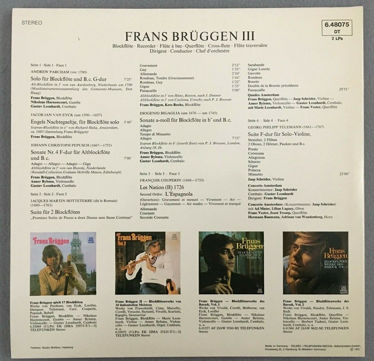 B708 Frans Brüggen Flute Works Vol.I,II,III 4LP Telefunken Stereo