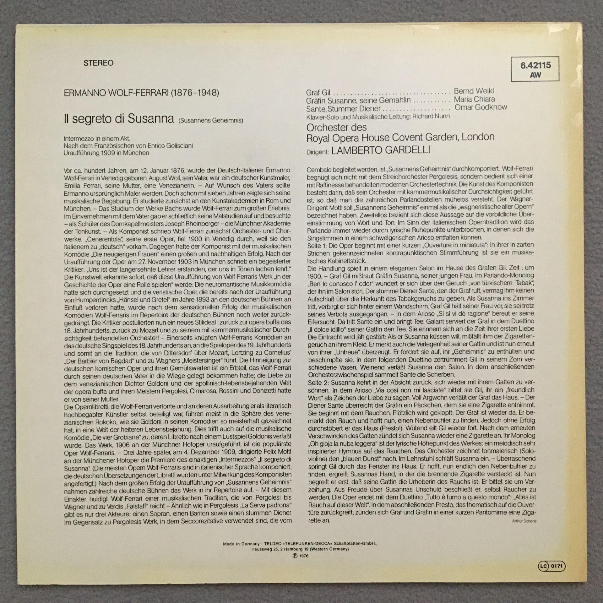 Q697 Wolf-Ferrari Susannes Geheimnis Chiara Gardelli DECCA 6.42115 AW Stereo
