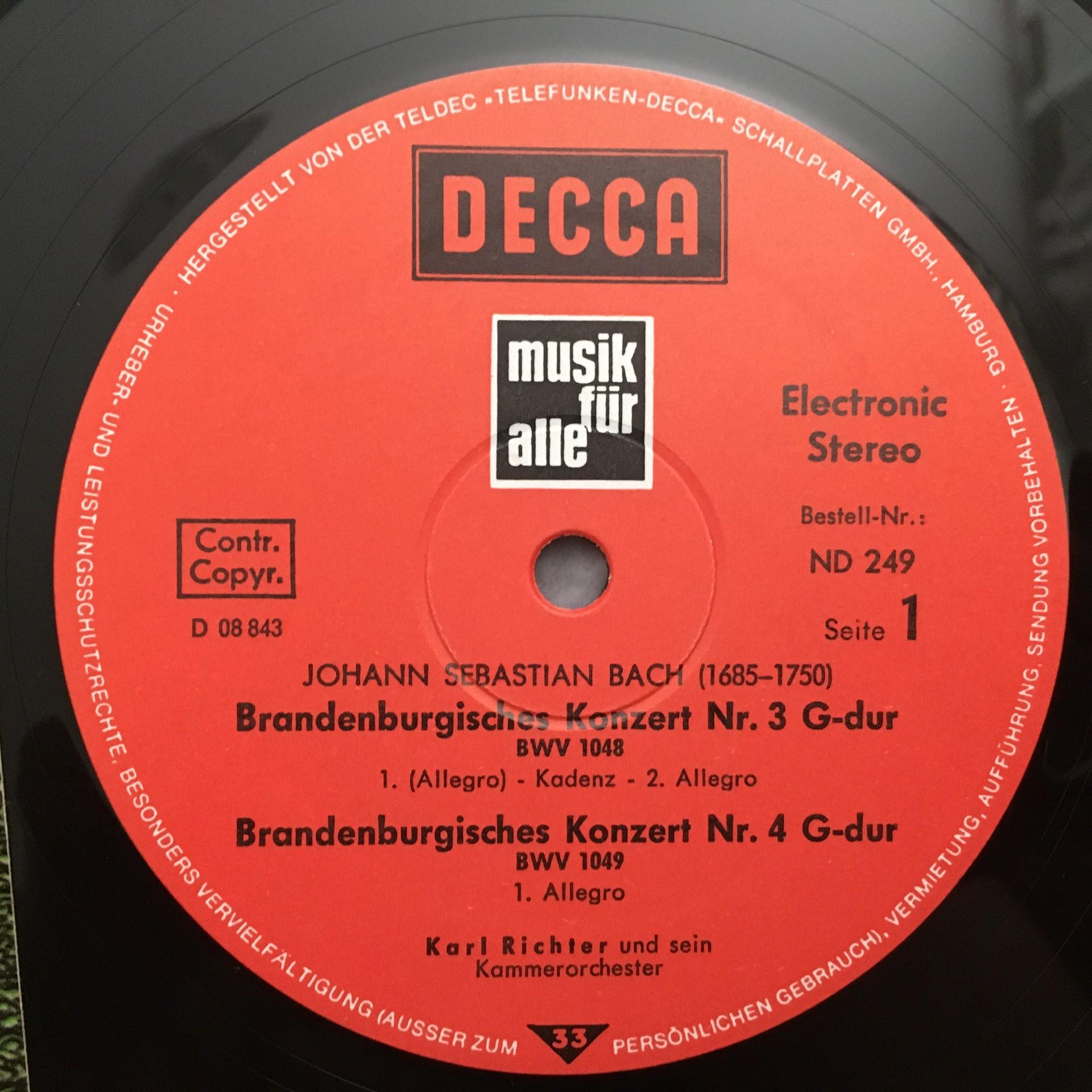 Q704 Bach Brandenburg Concertos No.3, 4 & 6 Richter DECCA ND 249 Stereo