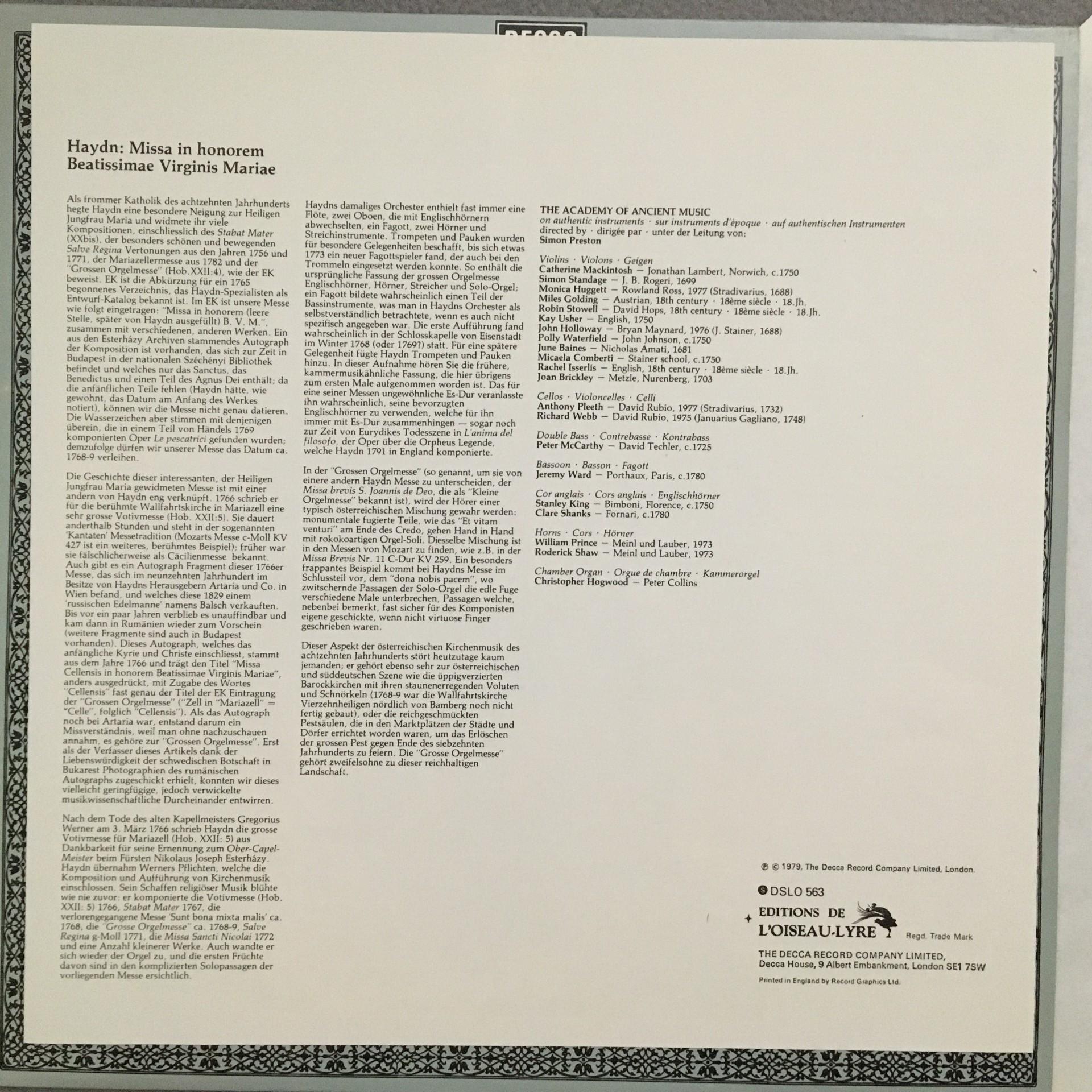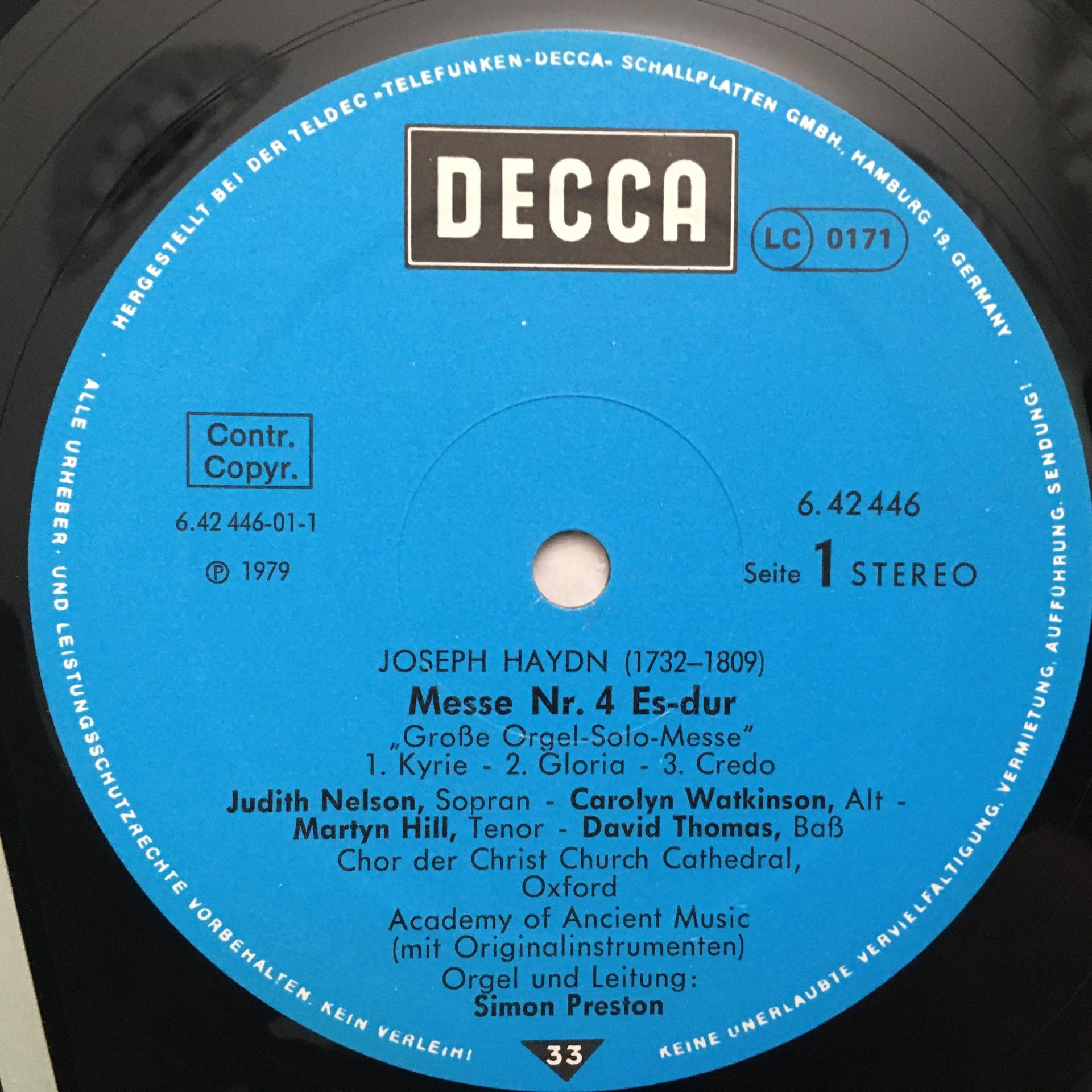 Q705 Haydn Mass No.4 Nelson Thomas Preston DECCA 6.42446 AS Stereo