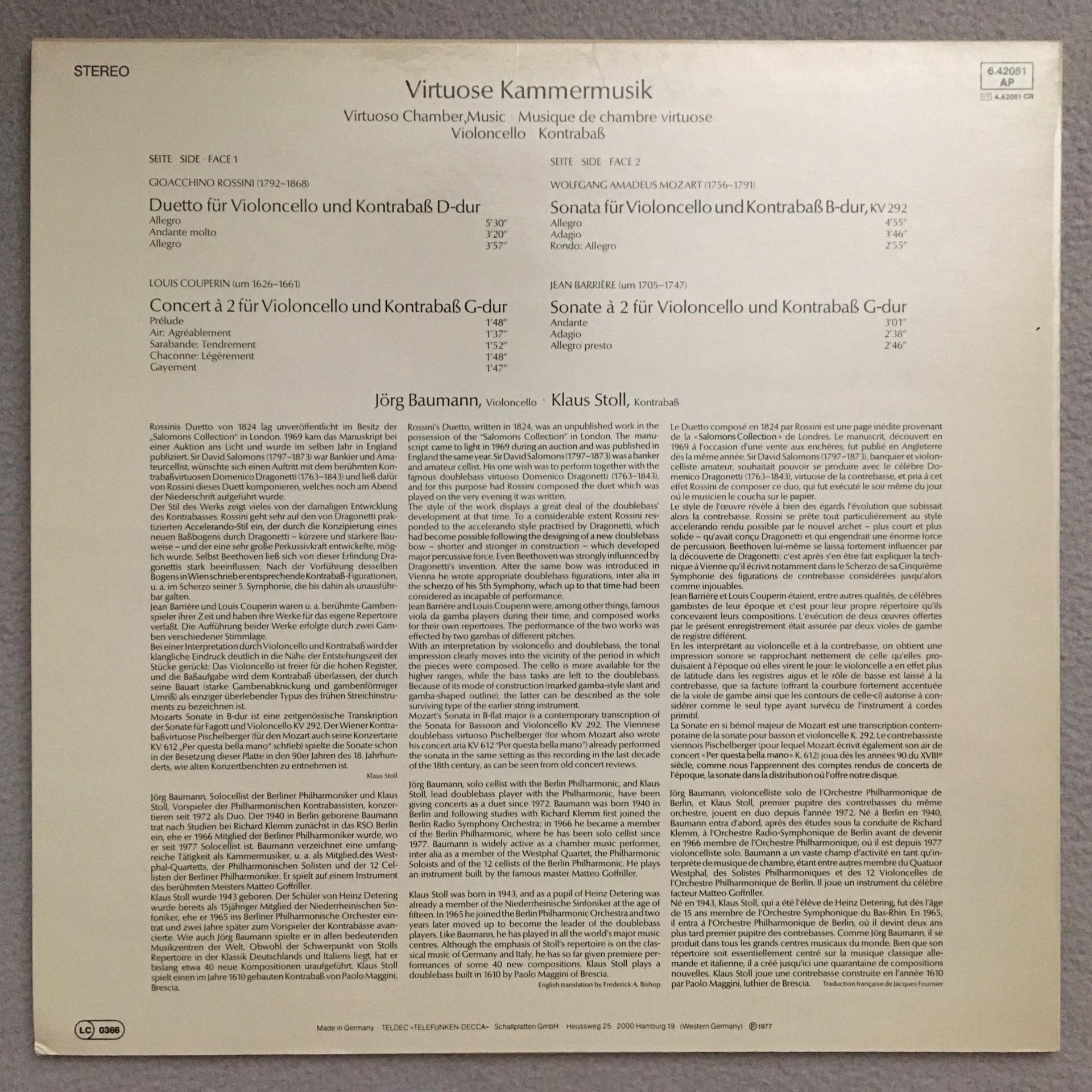 Q722 Virtuoso Chamber Music Baumann Stoll Telefunken 6.42051 AP Stereo