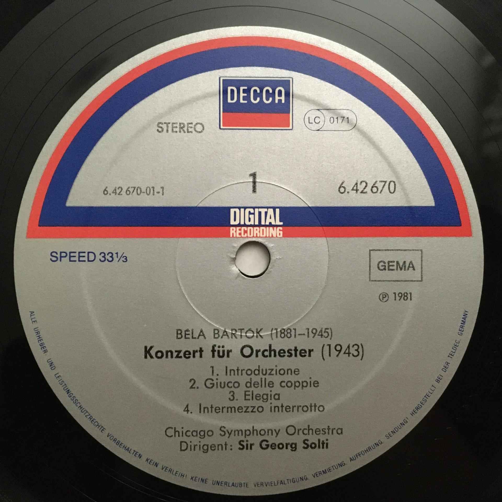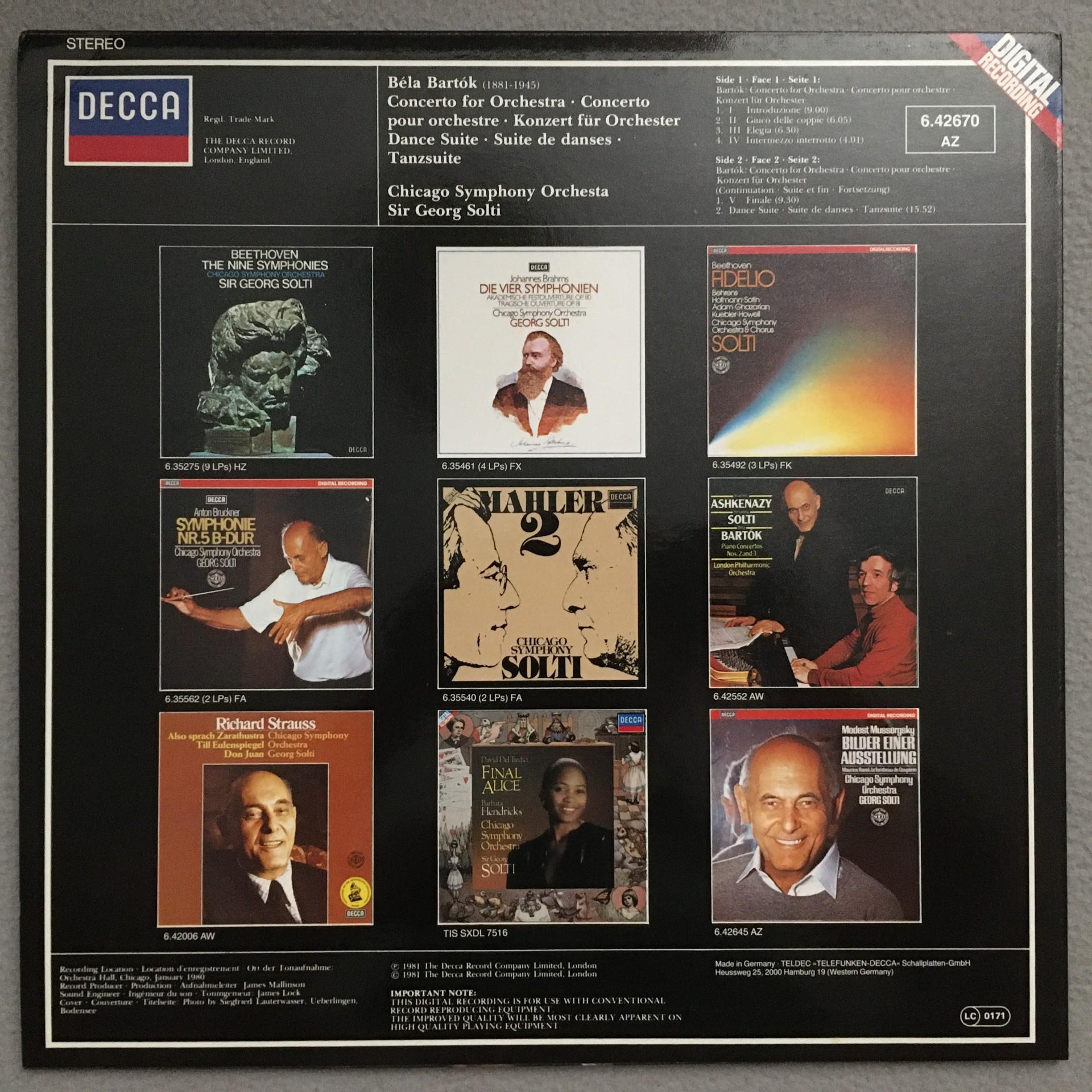 Q726 Bartok Concerto for Orchestra Solti DECCA 6.42670 AZ Digital Stereo