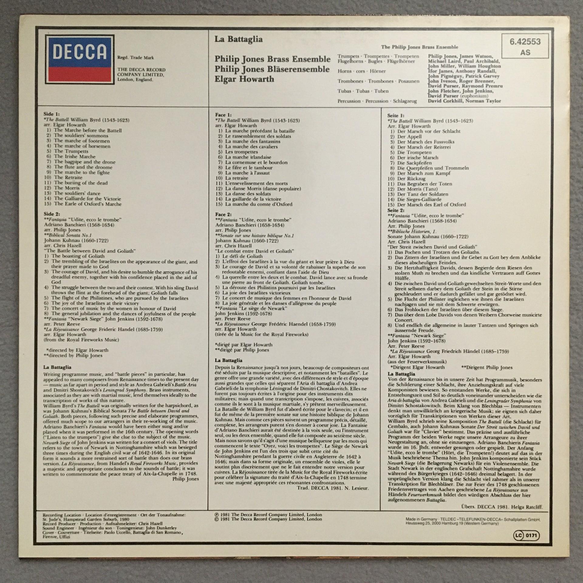 Q730 La Battaglia Philip Jones Brass Ensemble Howarth DECCA 6.42553 AS Stereo