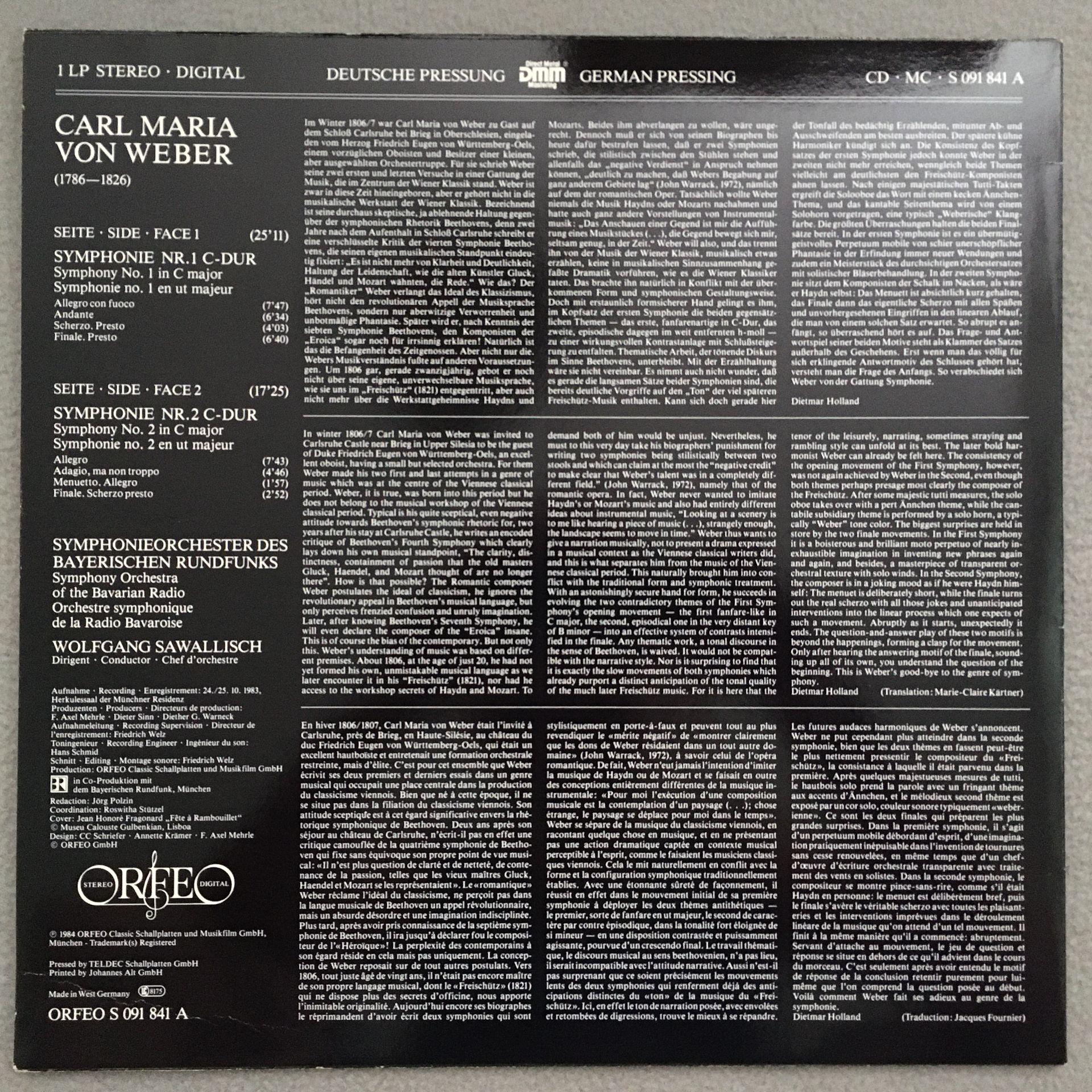 Q735 Weber Symphonies Sawallisch Orfeo S 091 841 A Digital Stereo