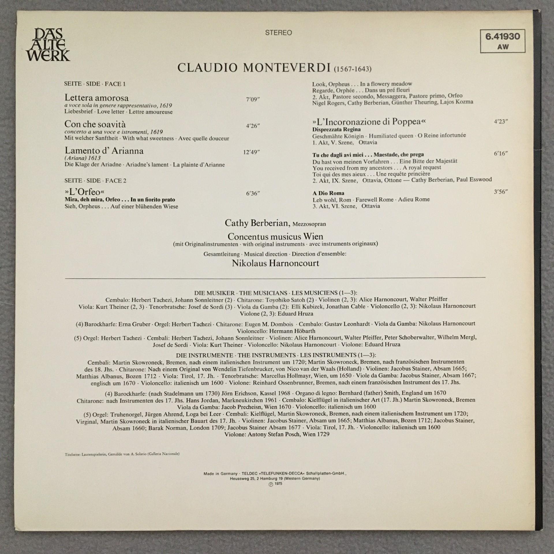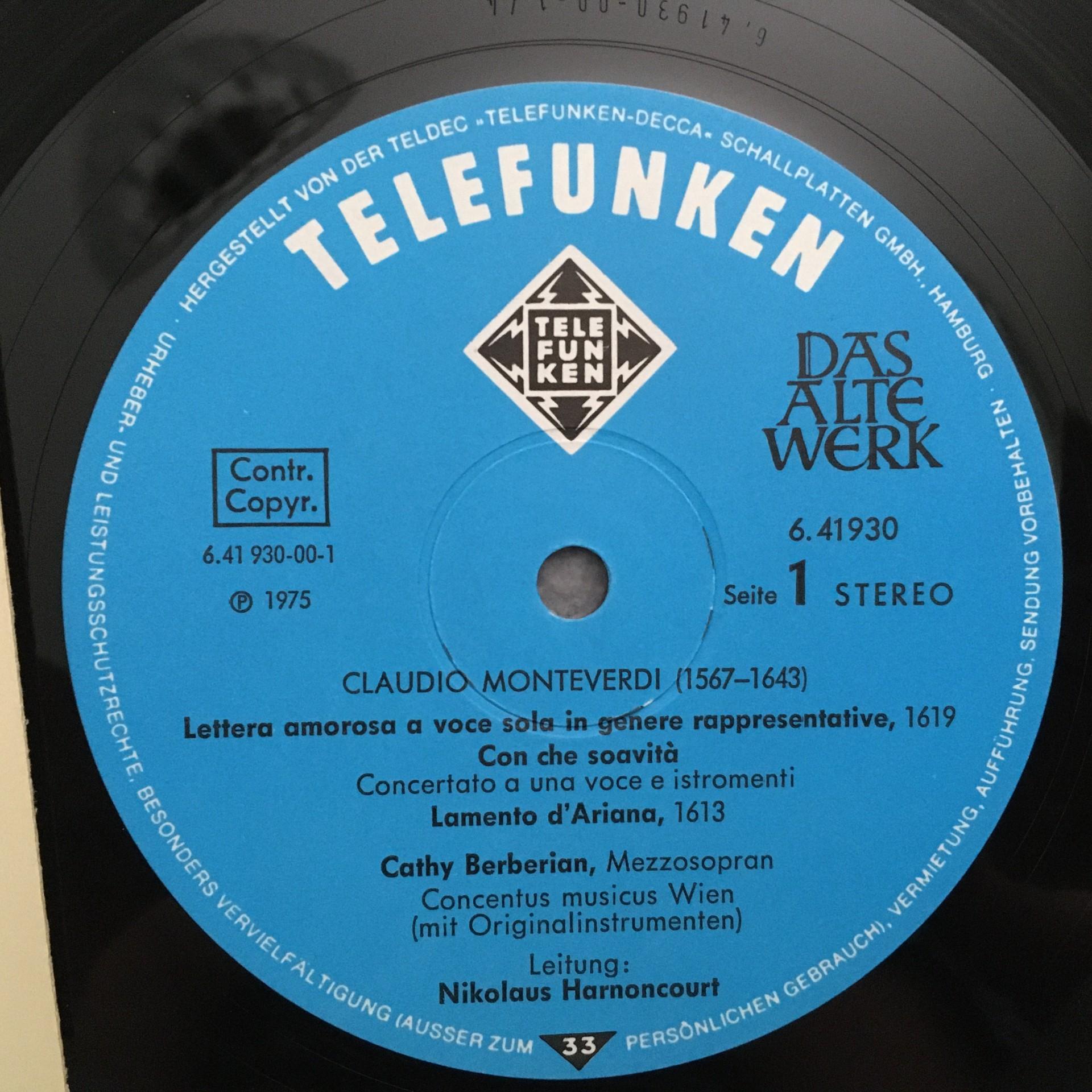 Q746 Monteverdi Lettera Amorosa Berberian Telefunken 6.41930 AW Stereo