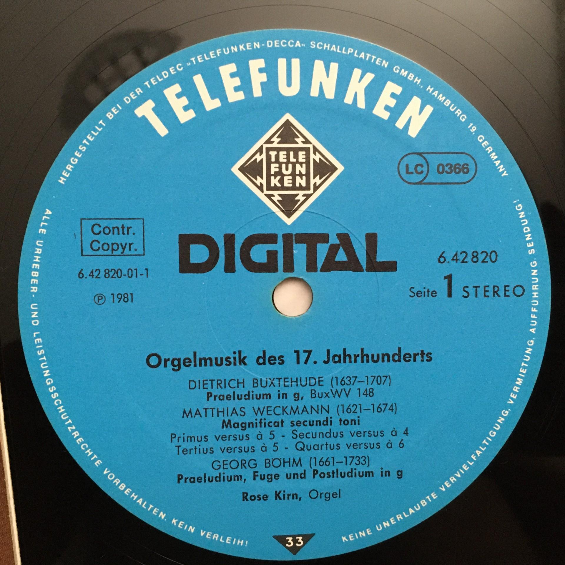 Q754 Organ Music 17th Century Kirn Telefunken 6.42820 AZ Digital Stereo