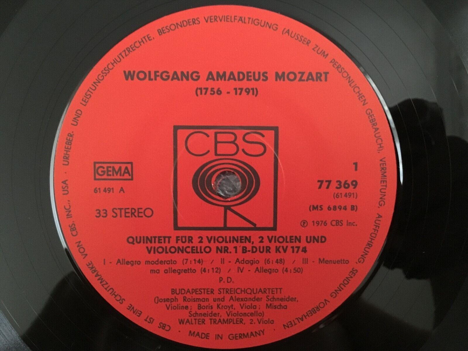 B729 Mozart The 6 String Quintets Trampler Budapest String 3LP CBS 77 369 Stereo