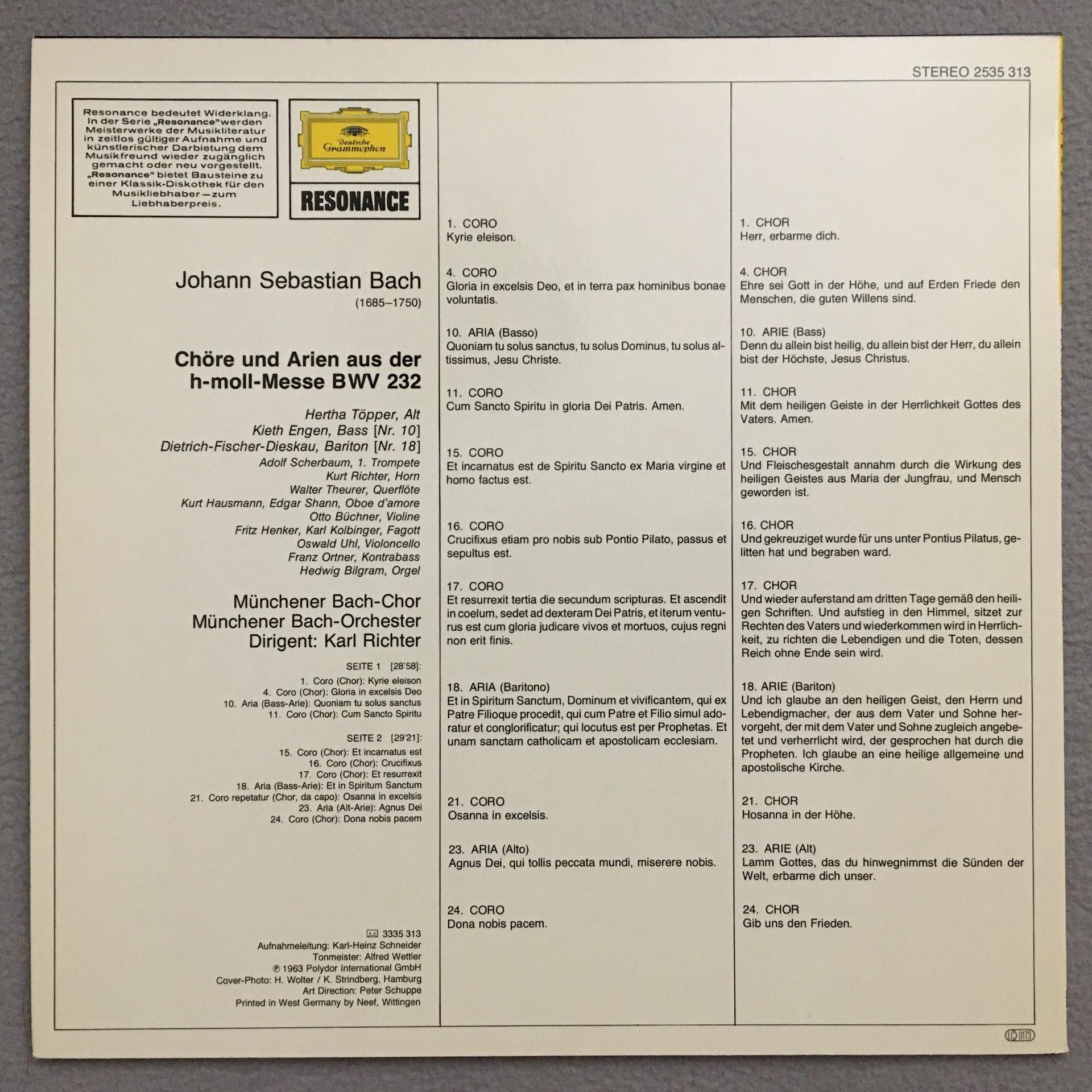 Q771 Bach Mass in B Minor Fischer-Dieskau Richter DGG 2535 313 Stereo
