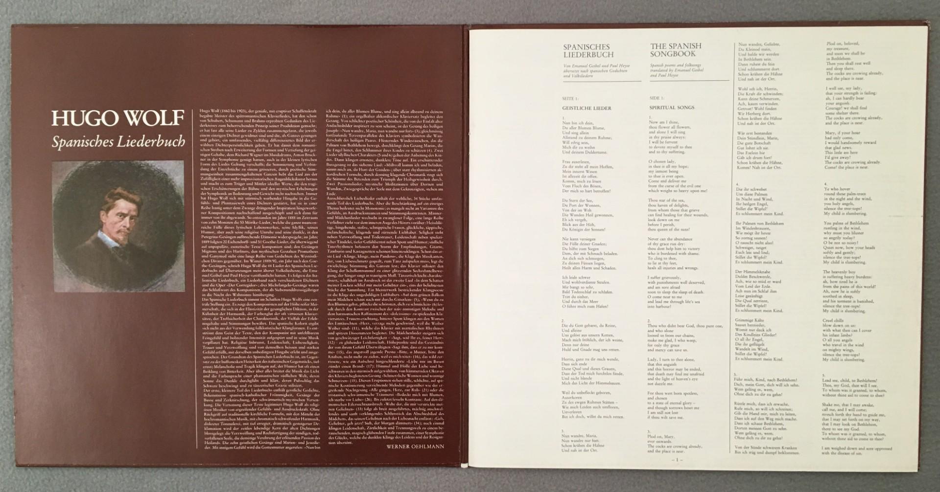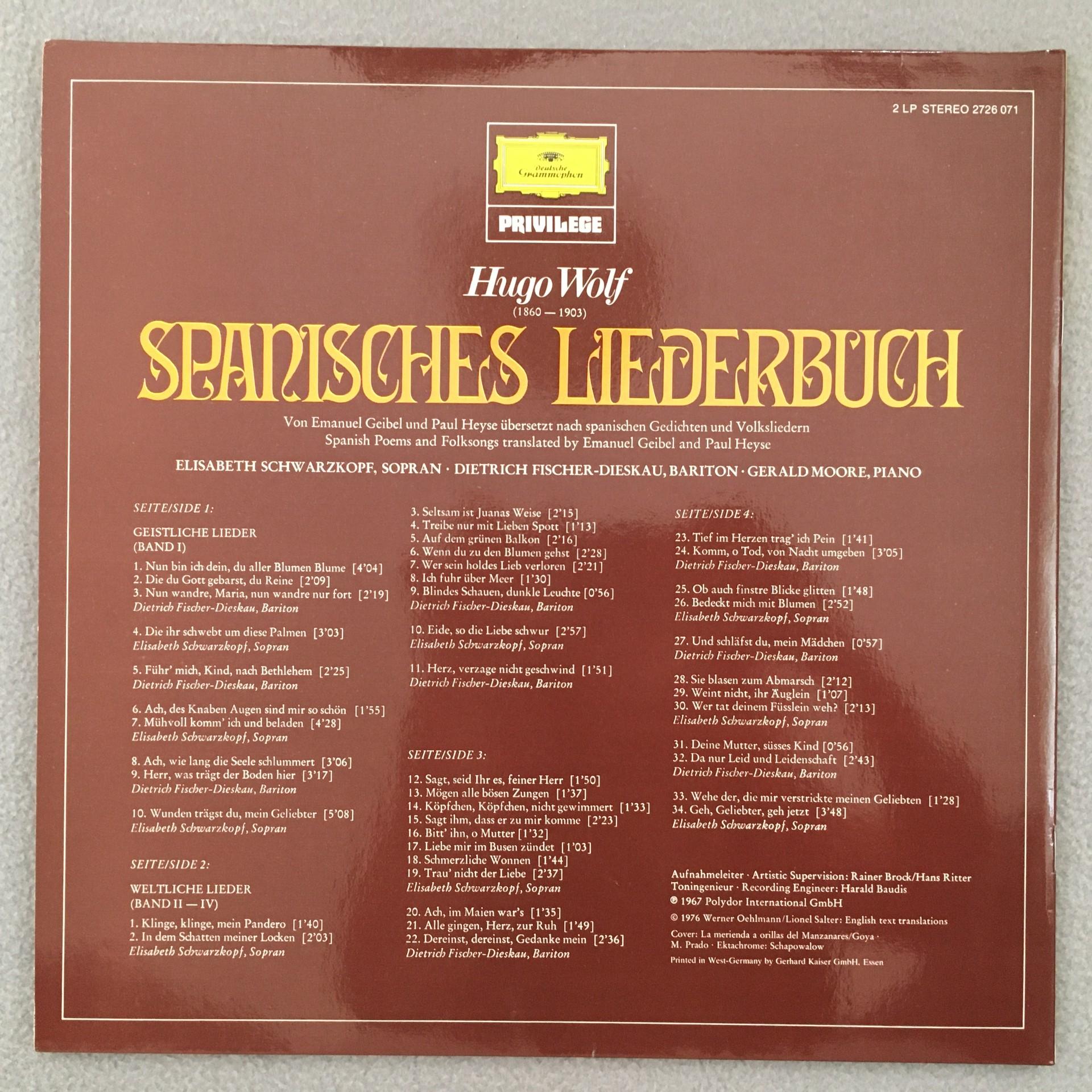 V192 Wolf Spanish Song Book Fischer-Dieskau Moore 2LP DGG 2726 071 Stereo