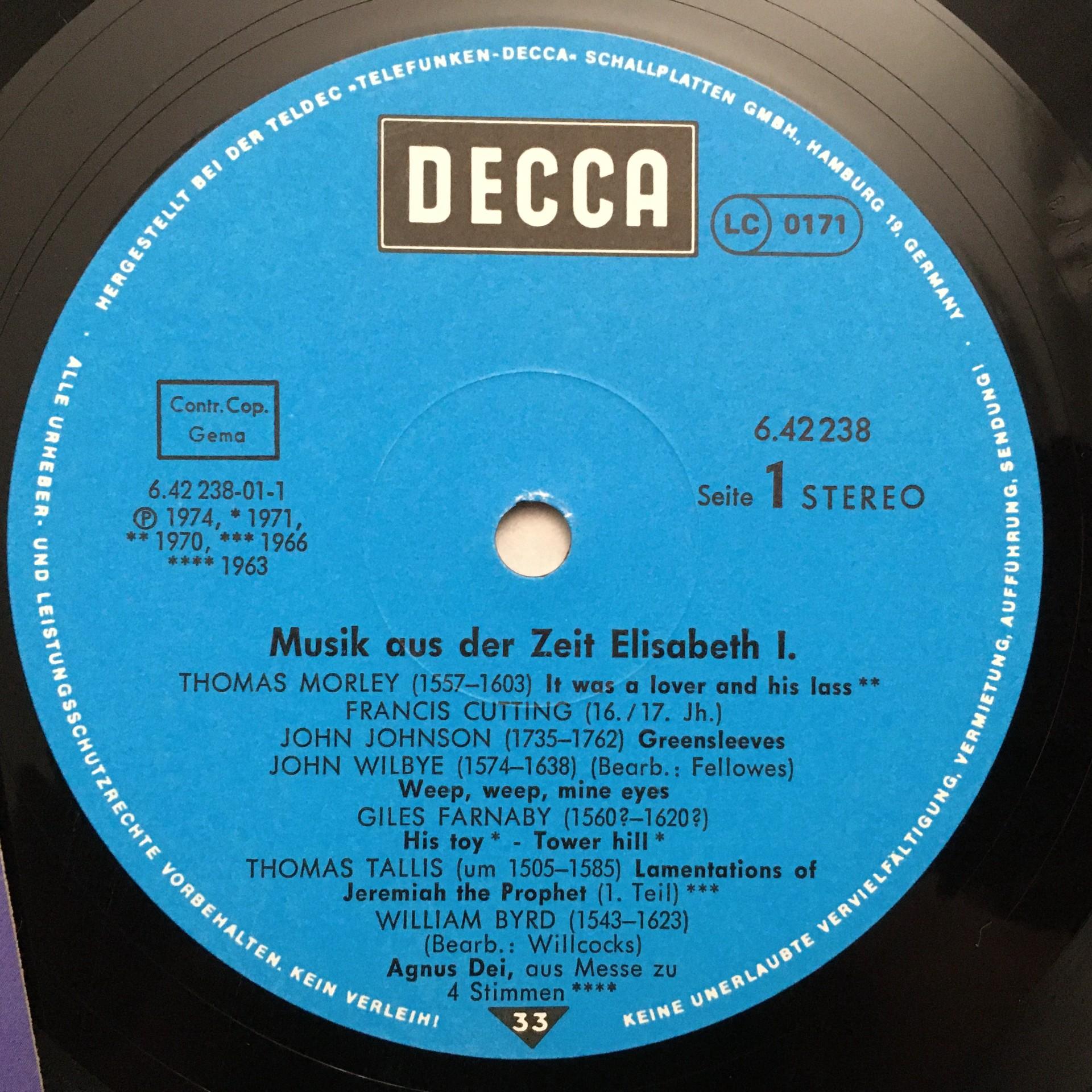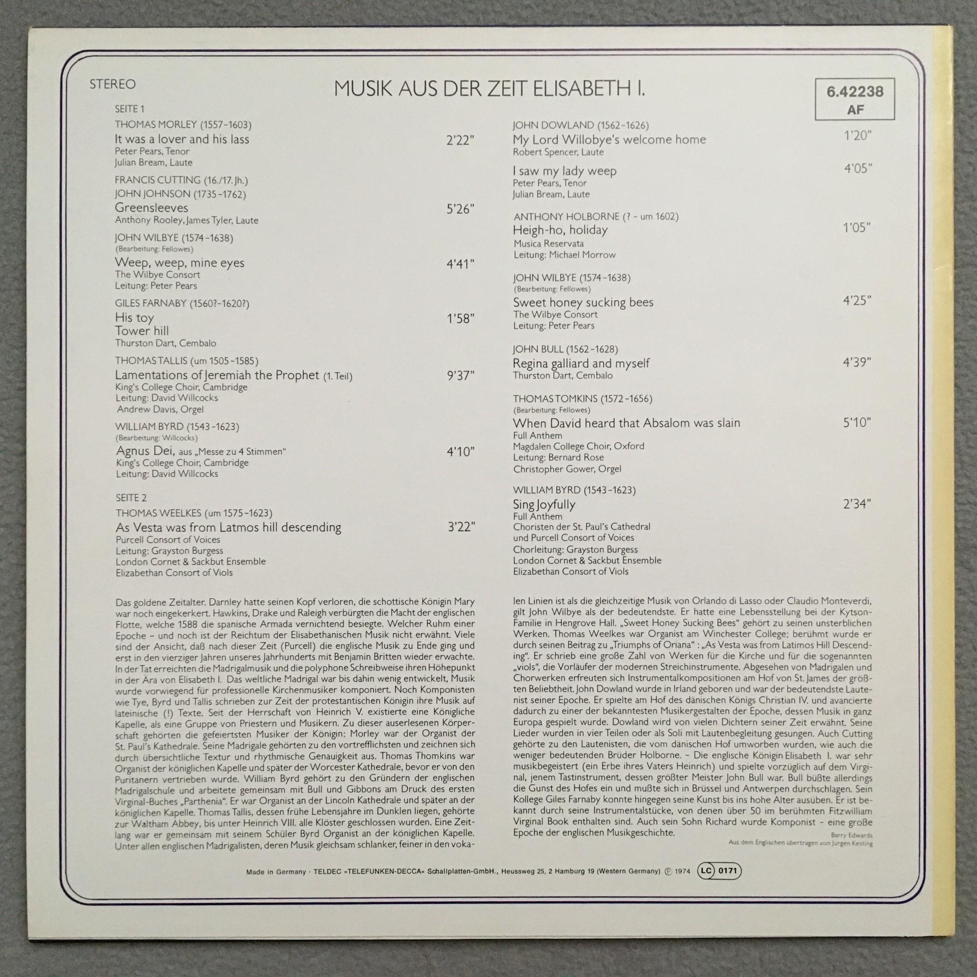 Q794 Music at the time of Elisabeth I. Morley Dowland DECCA 6.42238 AH Stereo