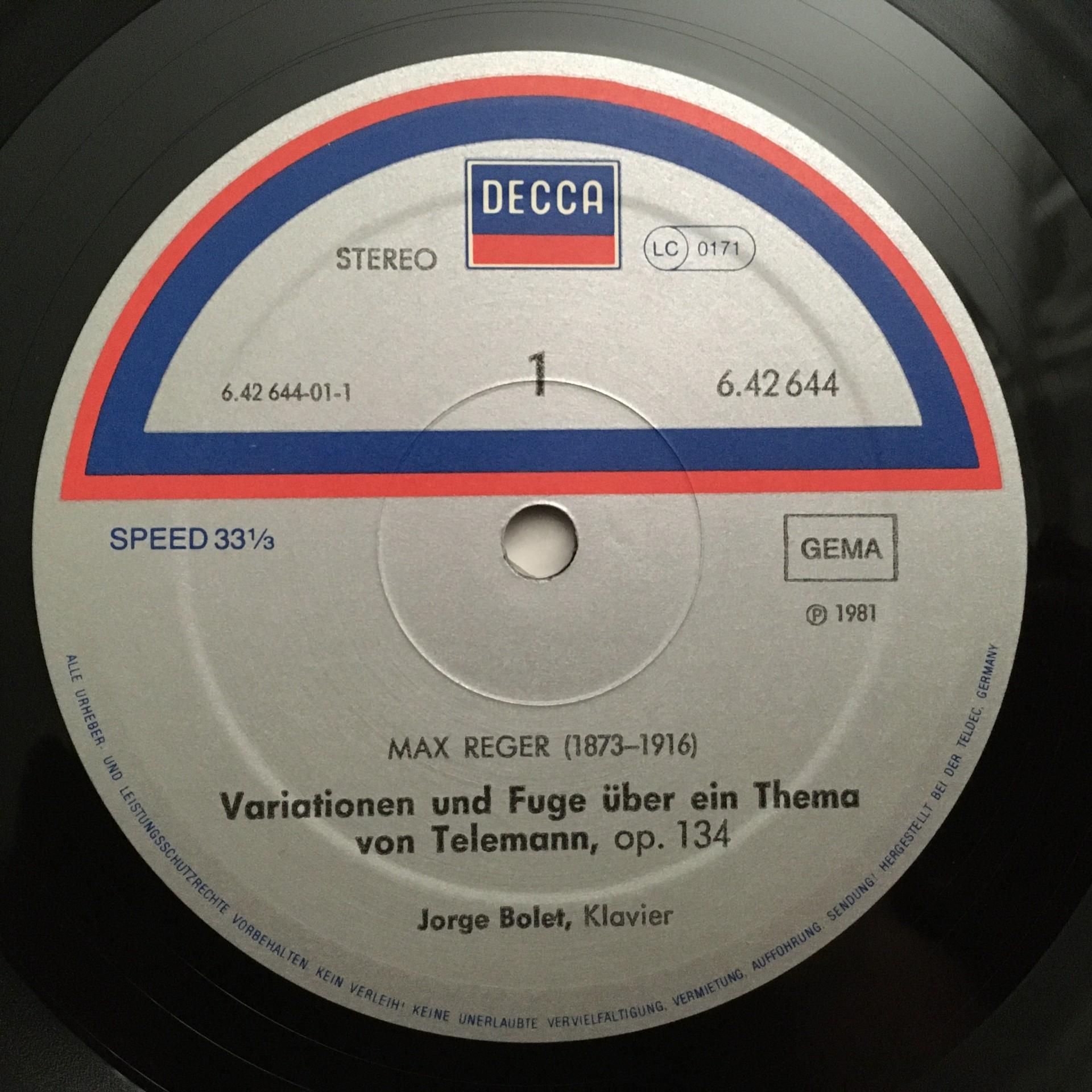Q797 Reger Brahms Variations and Fugue Bolet Piano DECCA 6.42644 AW Stereo