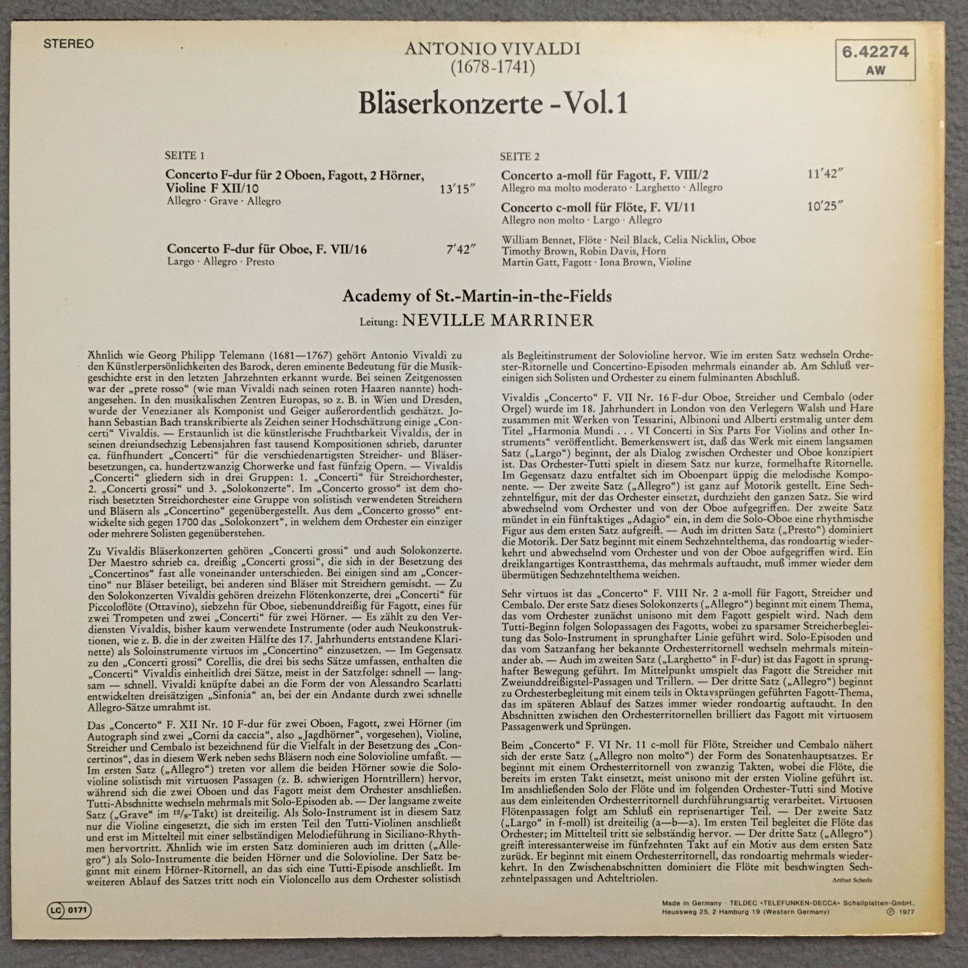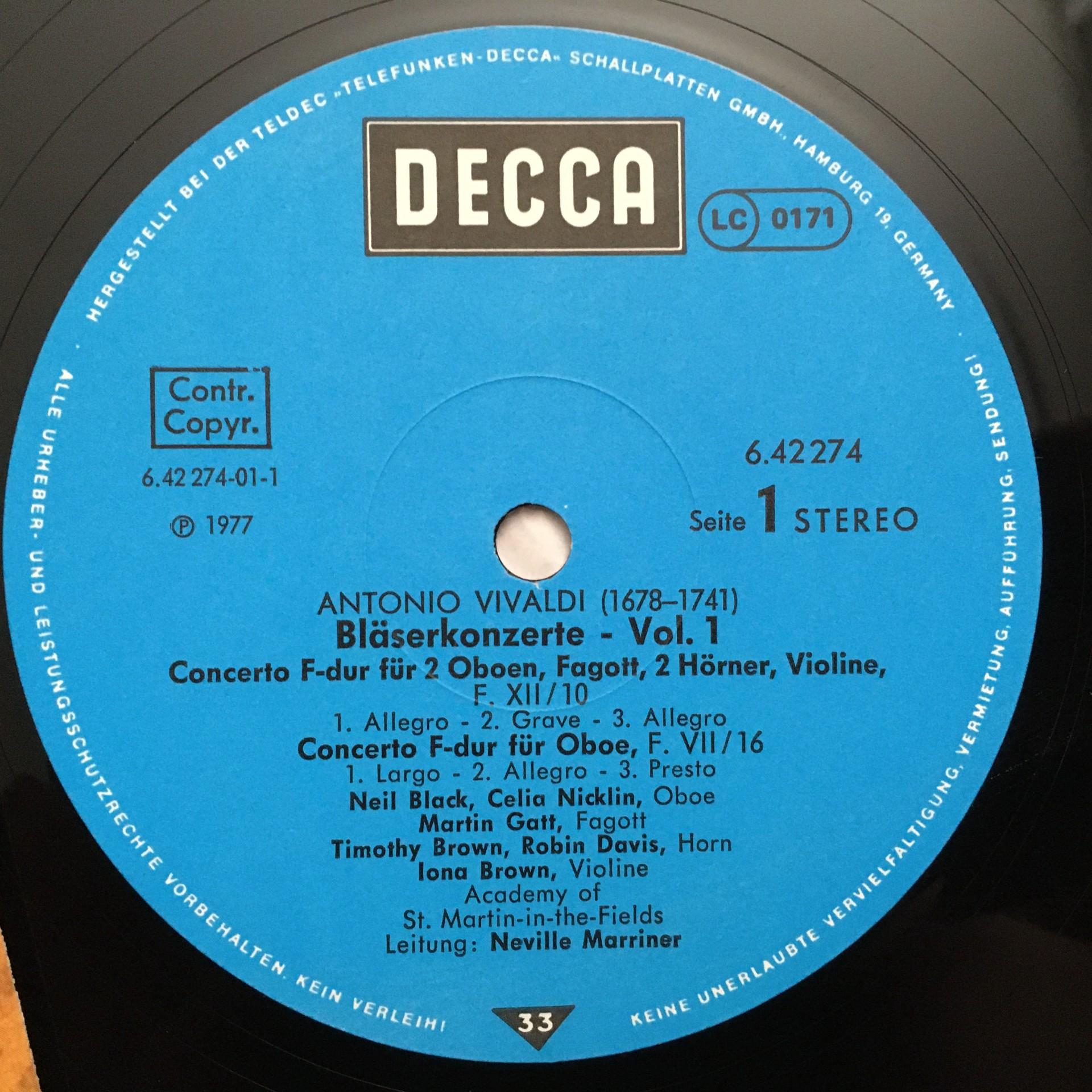 Q800 Vivaldi Wind Concertos Marriner Vol.1 DECCA 6.42274 AW Stereo