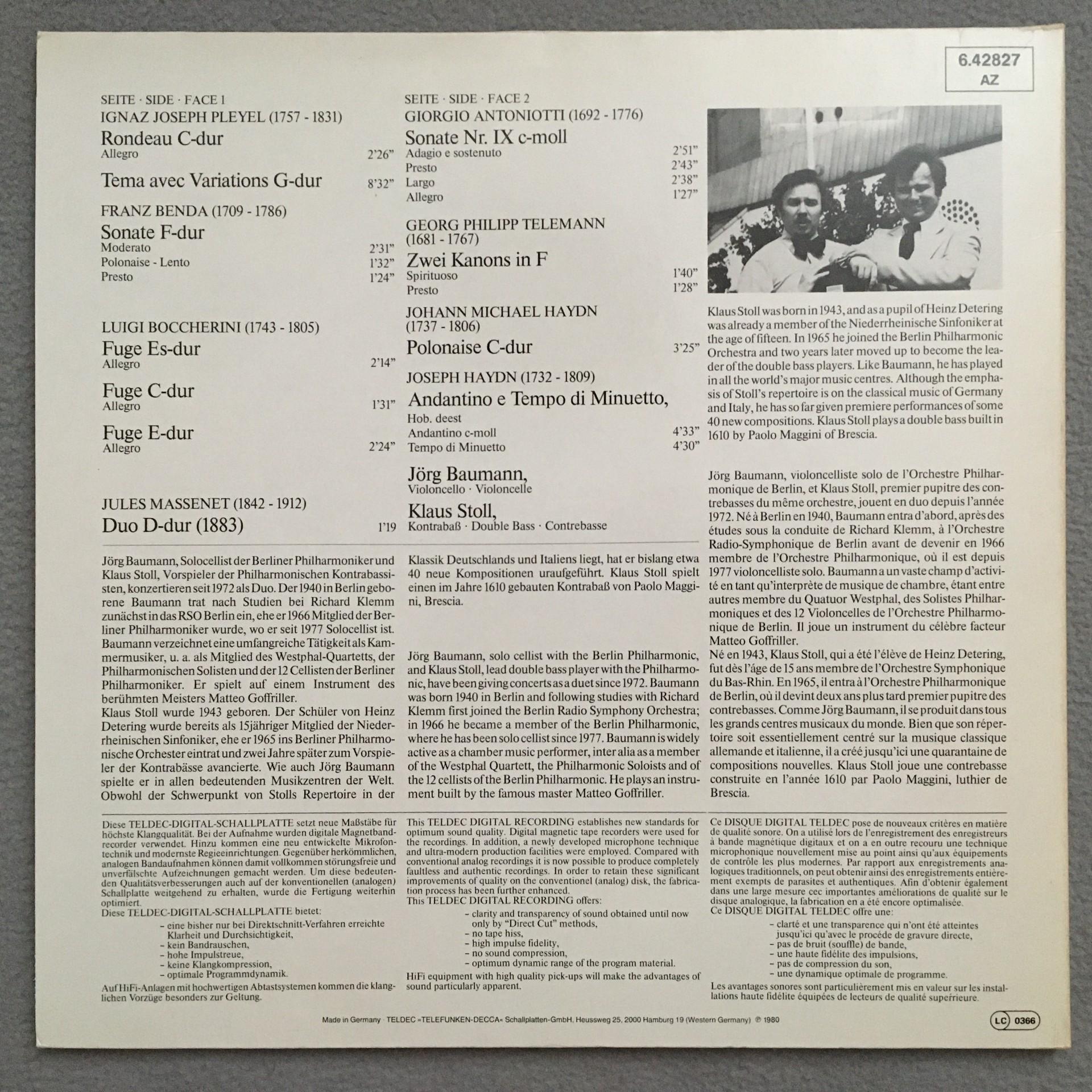 Q802 Works for Cello & Double Bass Baumann Stoll Telefunken 6.42827 AZ Stereo