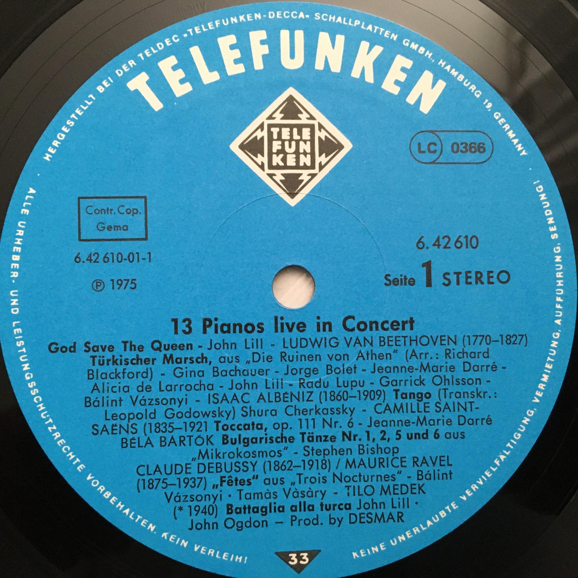 Q825 13 Pianos Live in Concert Lupu Ogdon Vasary Telefunken 6.42610 AH Stereo