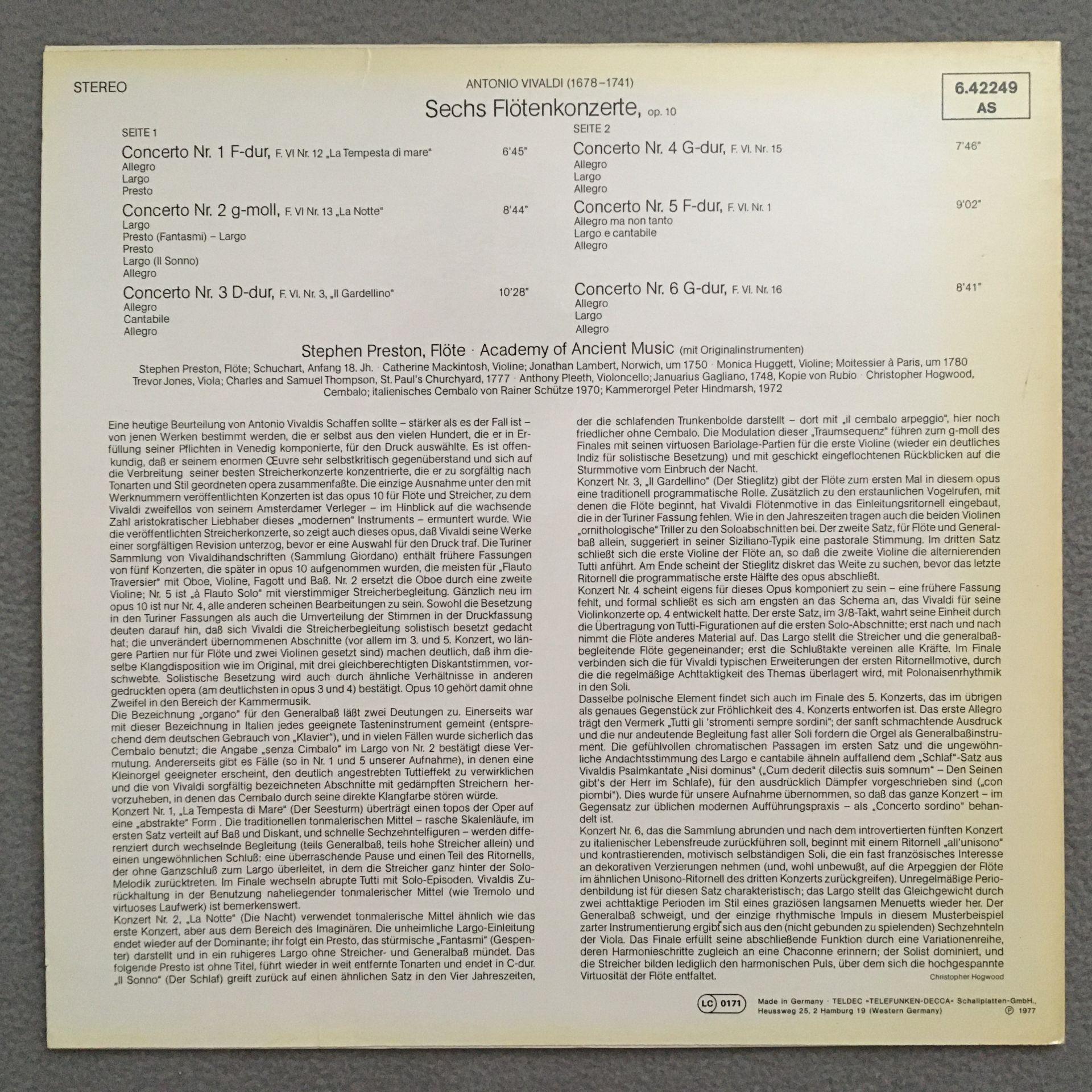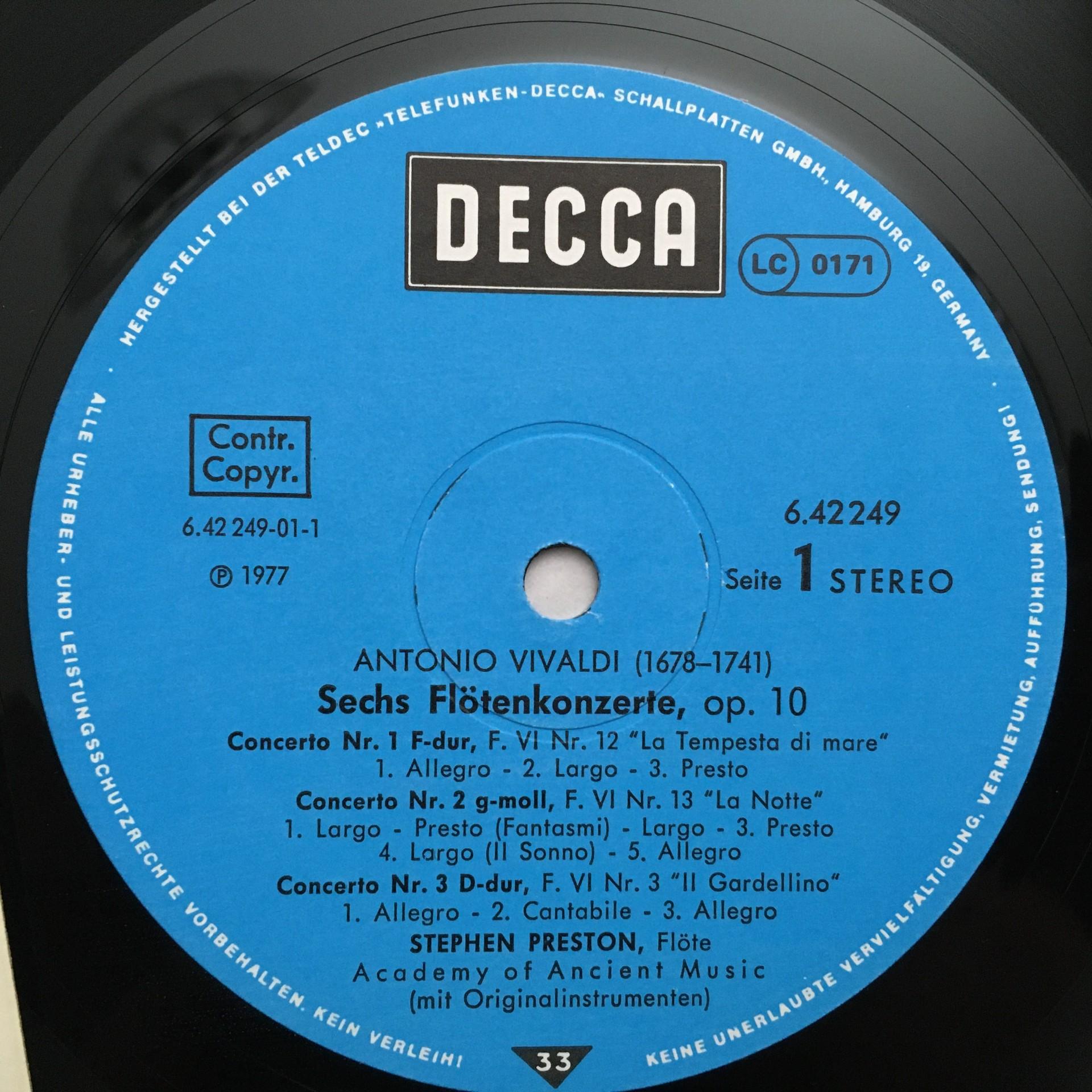 Q840 Vivaldi 6 Flute Concertos Preston Hogwood DECCA 6.42249 AS Stereo