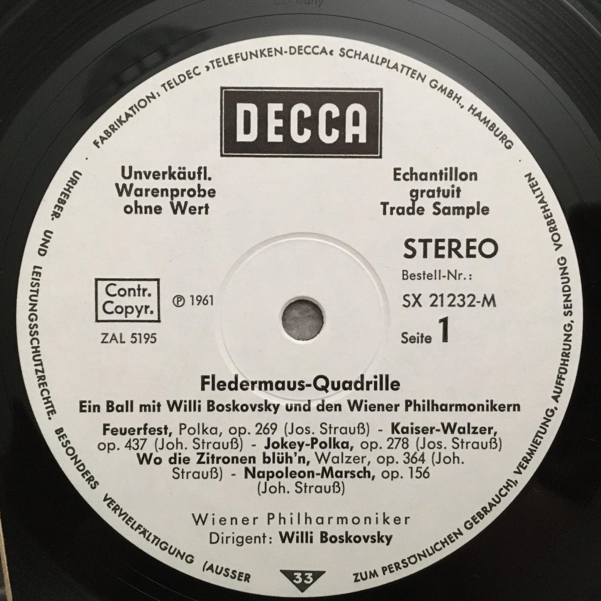 Q854 Fledermaus Quadrille Boskovsky VPO DECCA SX 21 232-M Stereo PROMO