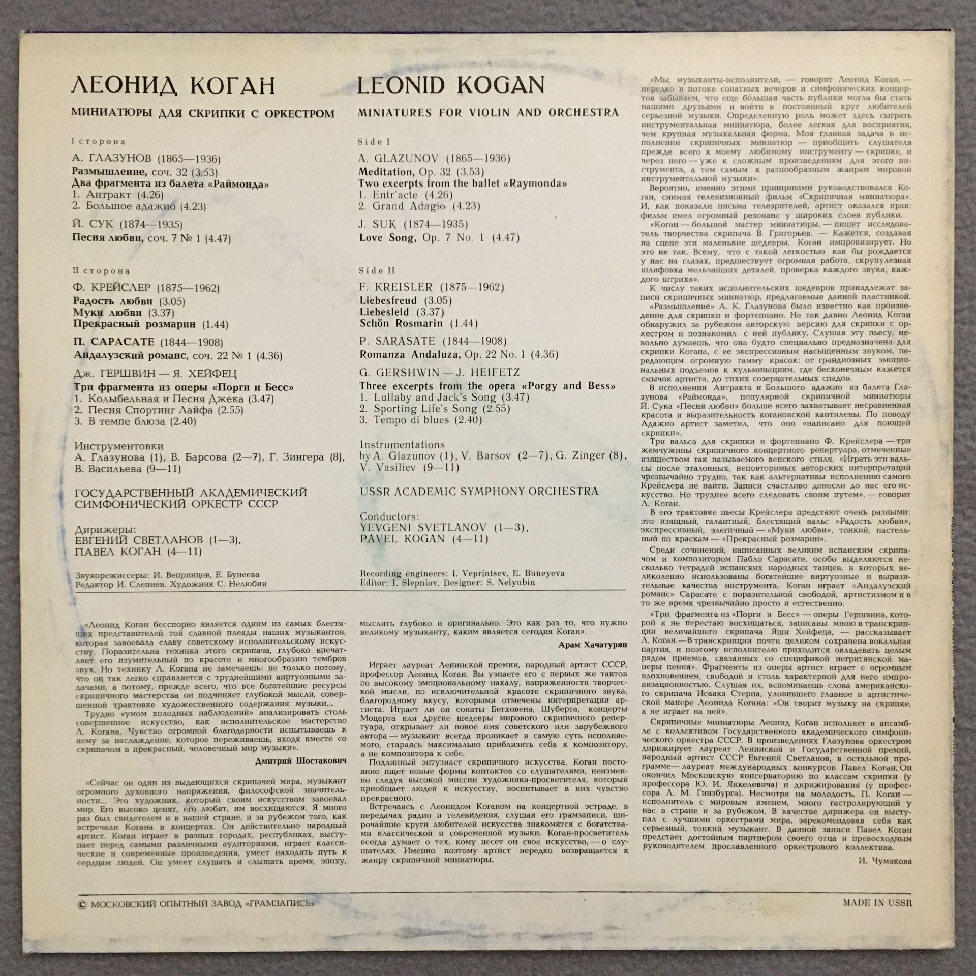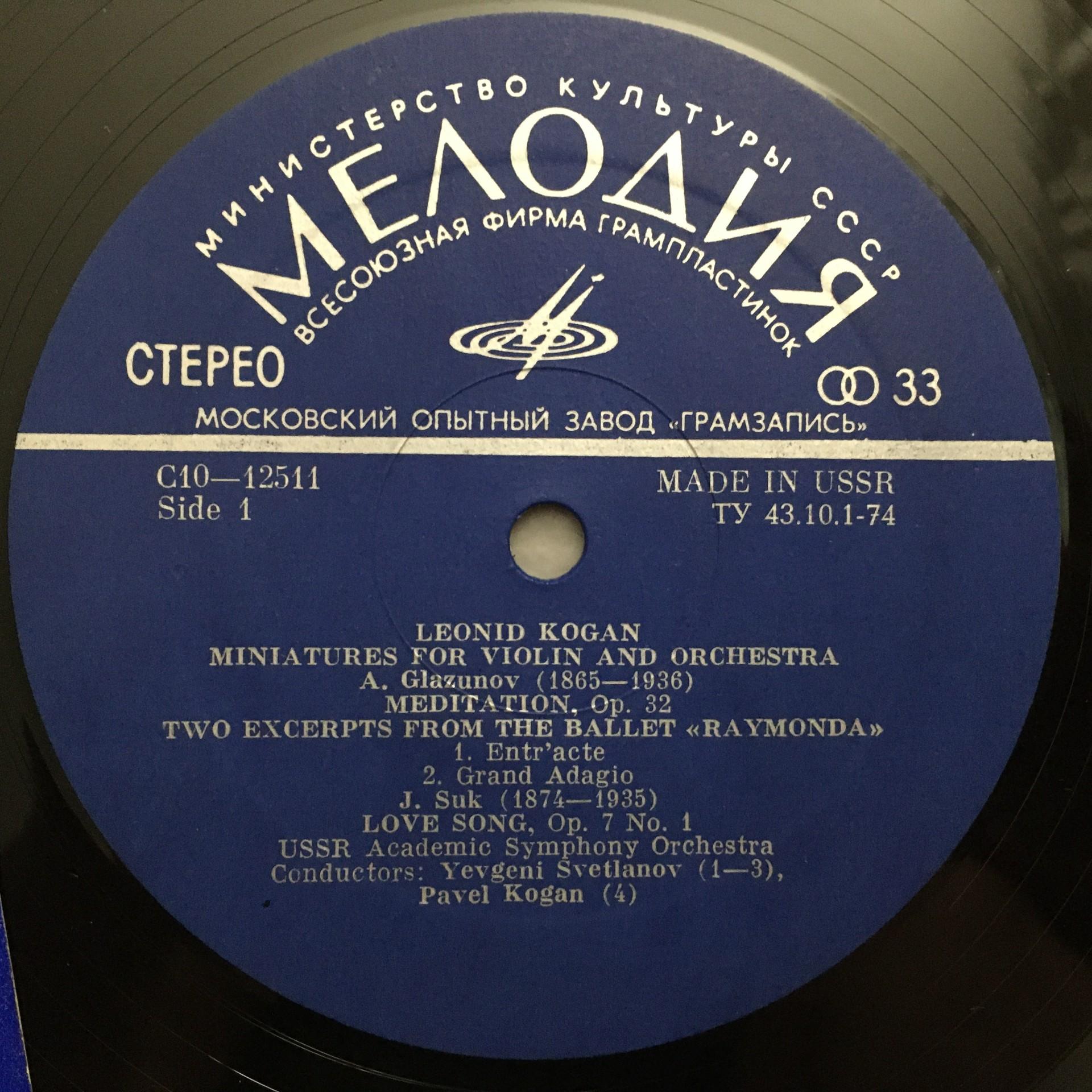 Q855 Glazunov Meditation Kreisler Kogan Svetlanov Melodiya C10-12511-12 Stereo