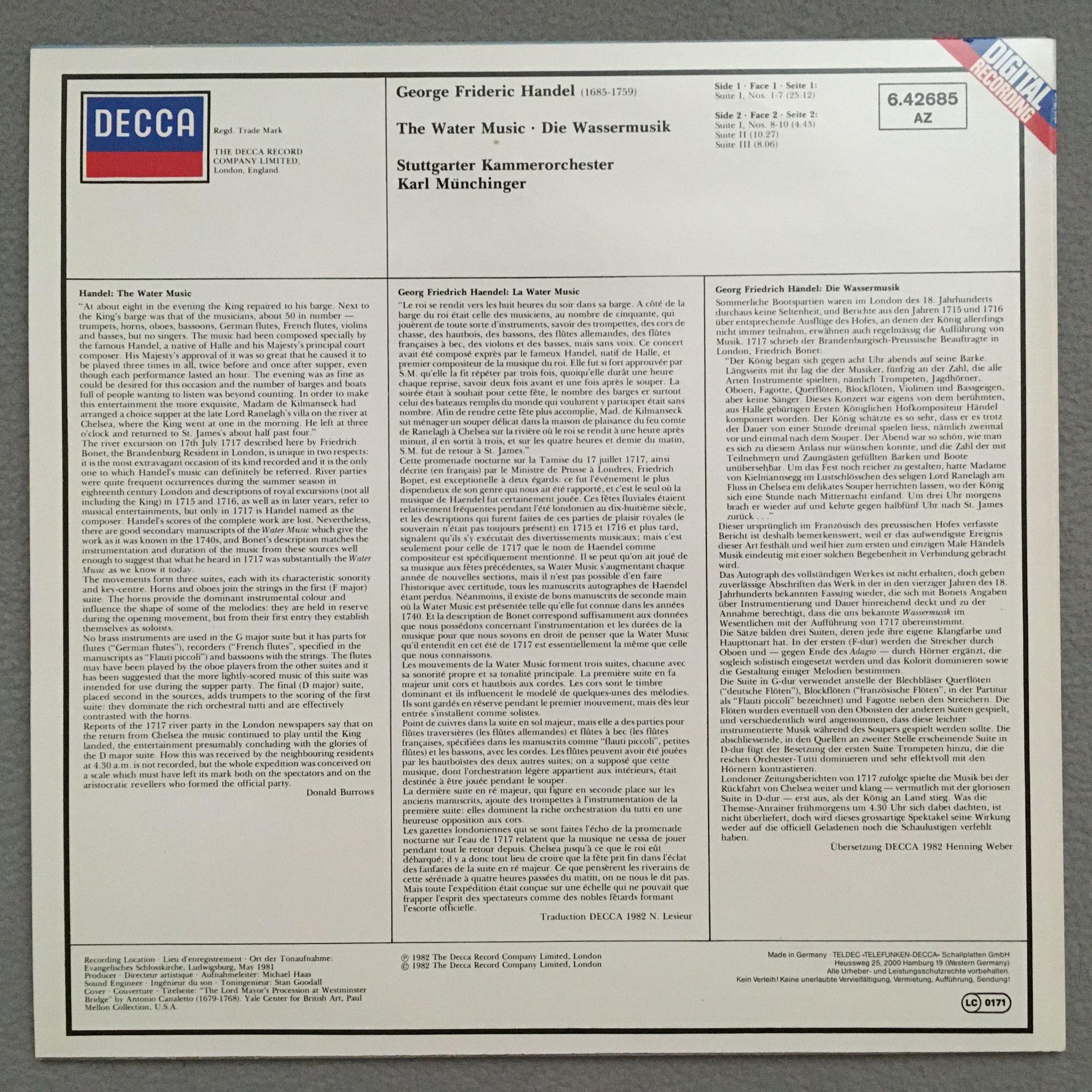 Q856 Handel Water Music Munchinger DECCA 6.42685 AZ Digital Stereo