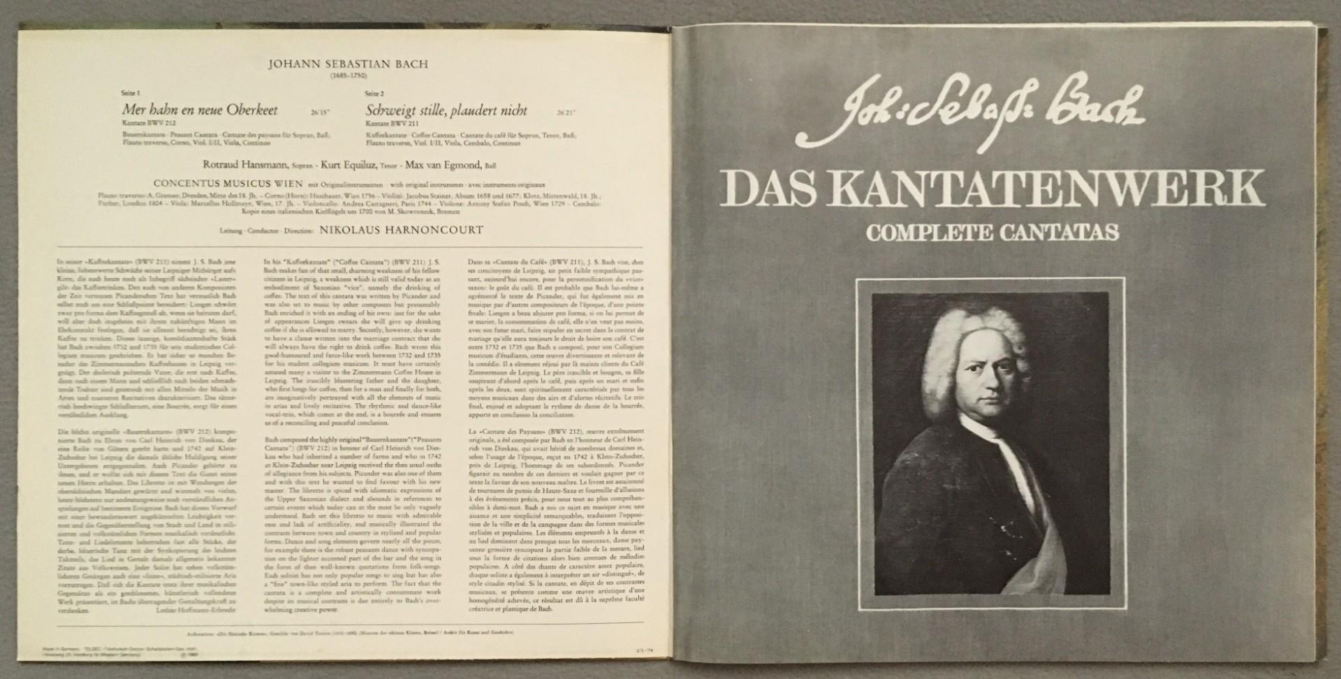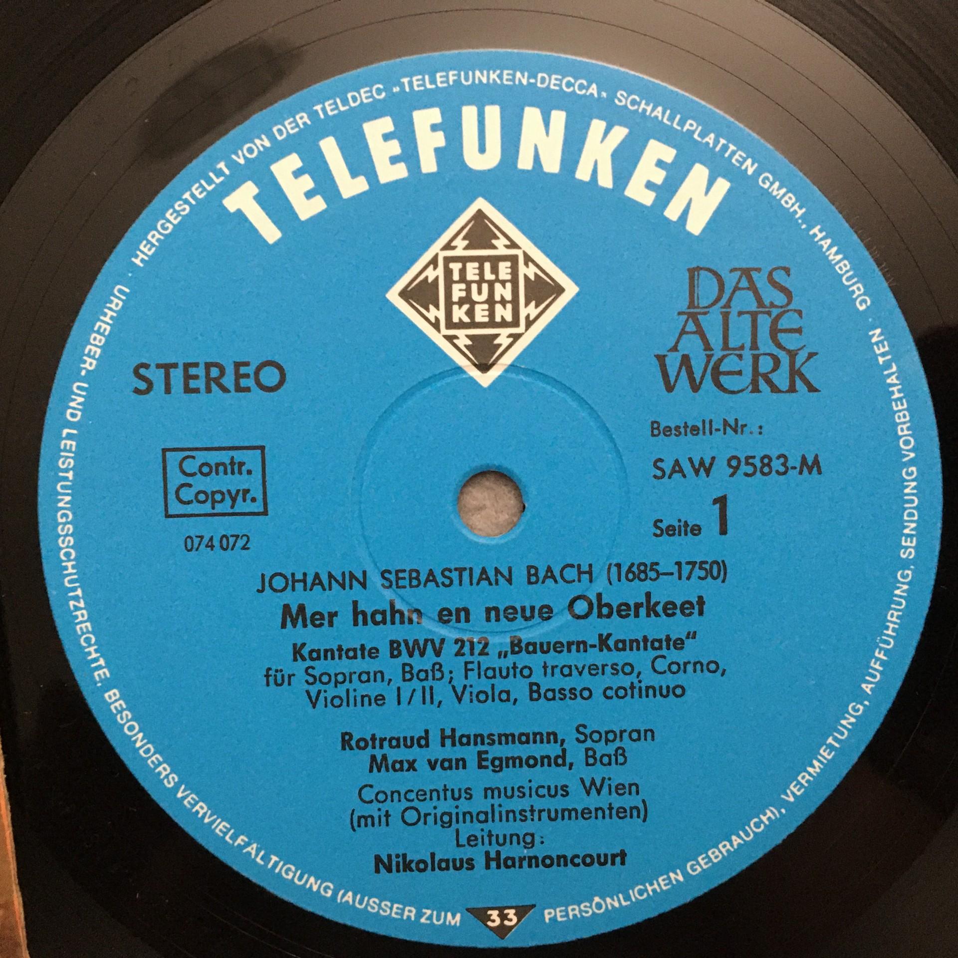 Q865 Bach Cantatas Harnoncourt Concentus Musicus Telefunken SAW 9583-M Stereo