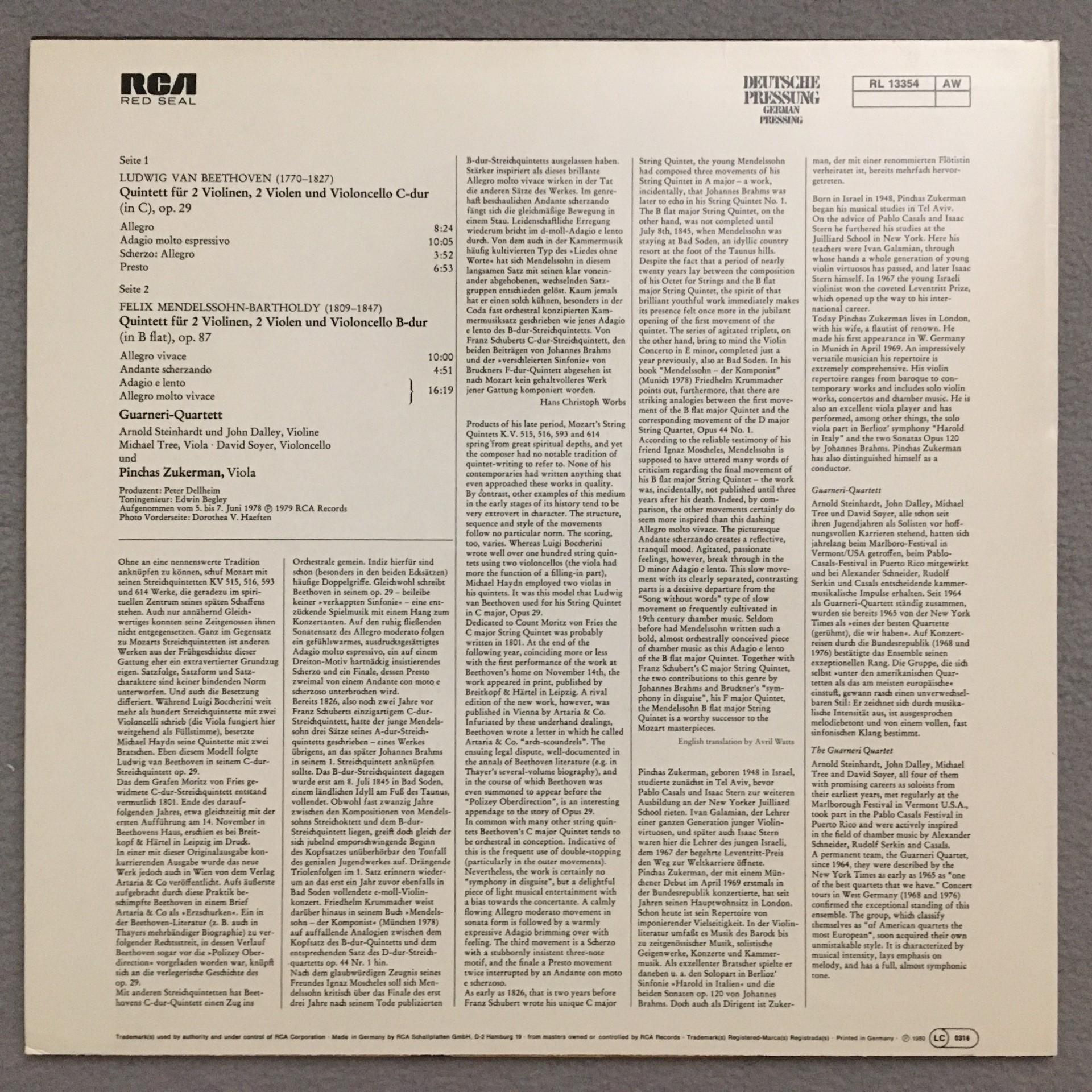Q868 Guarneri Quartet Beethoven Mendelssohn-Bartholdy RCA Red Seal RL 13354 AW S