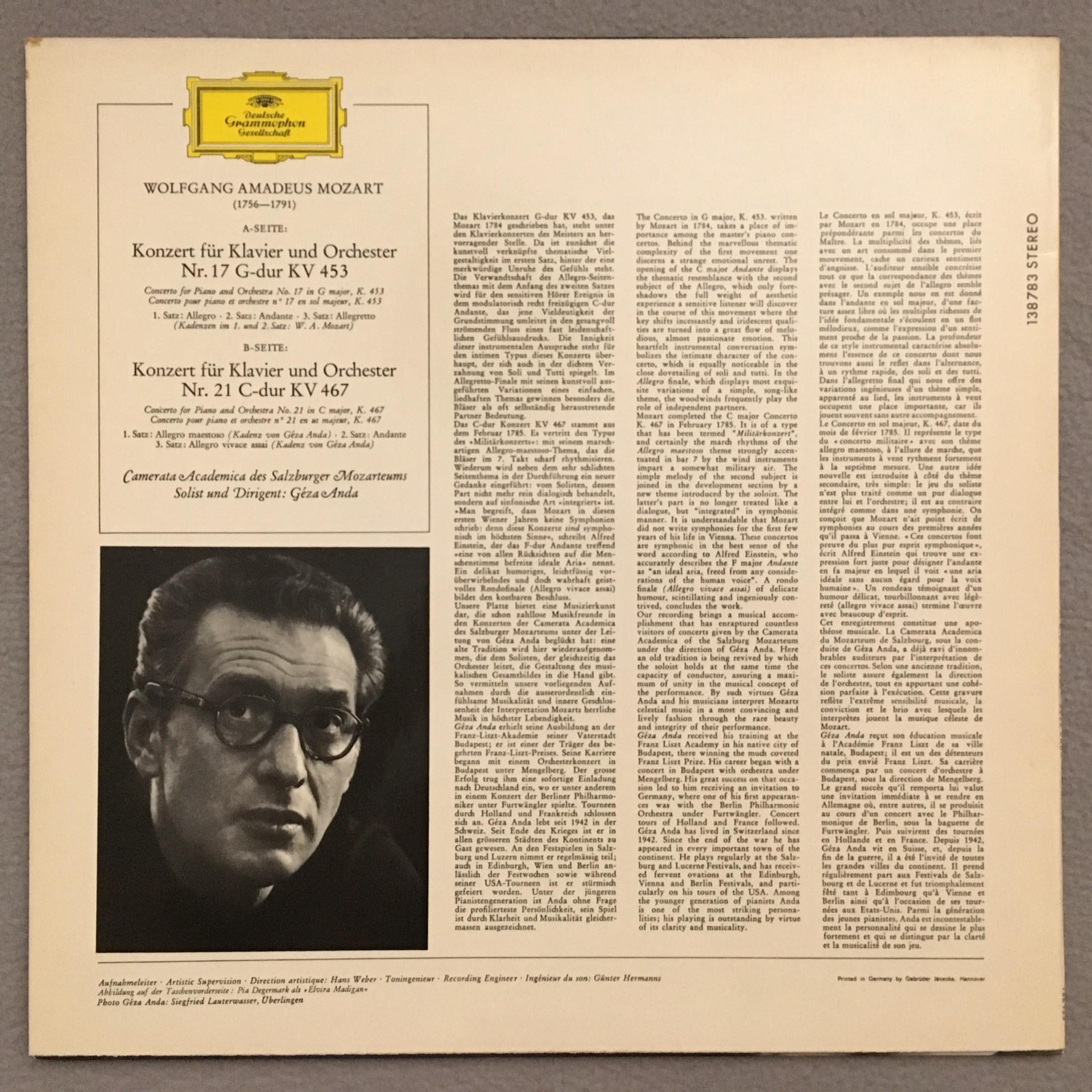 Q871 Mozart Piano Concertos Anda Camerata Salzburg DGG 138 783 SLPM Stereo