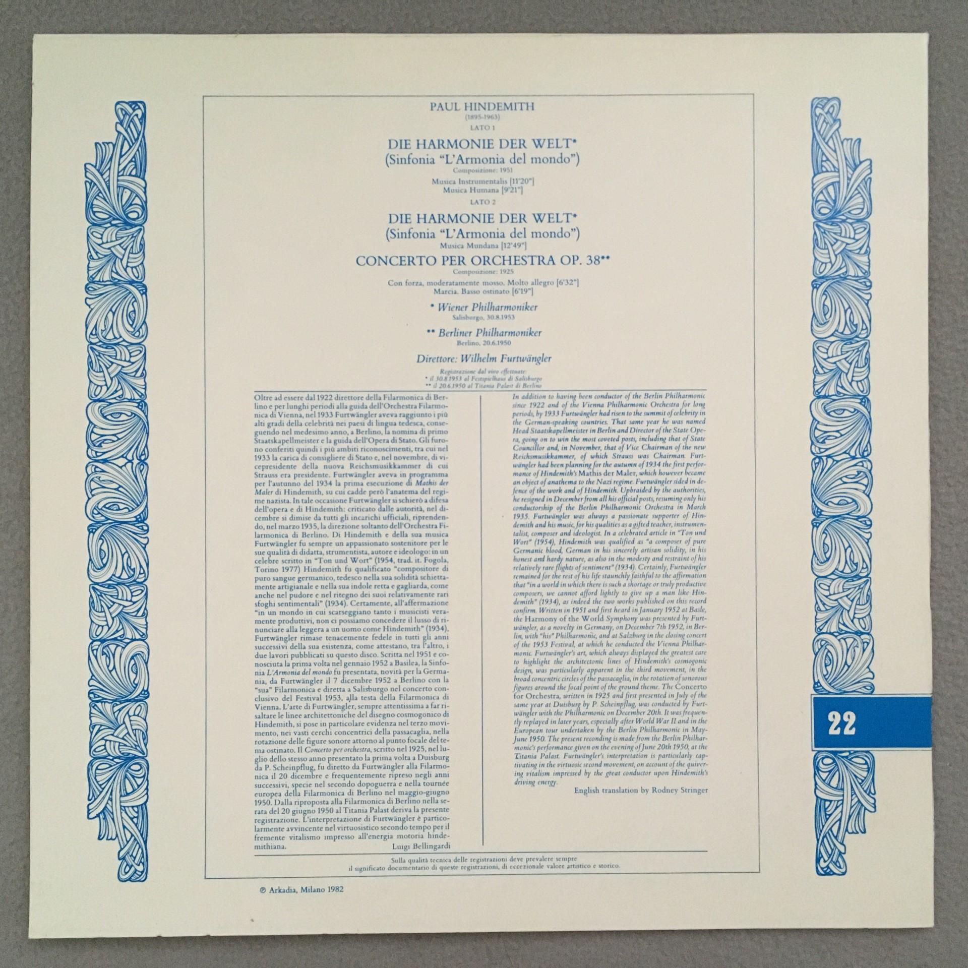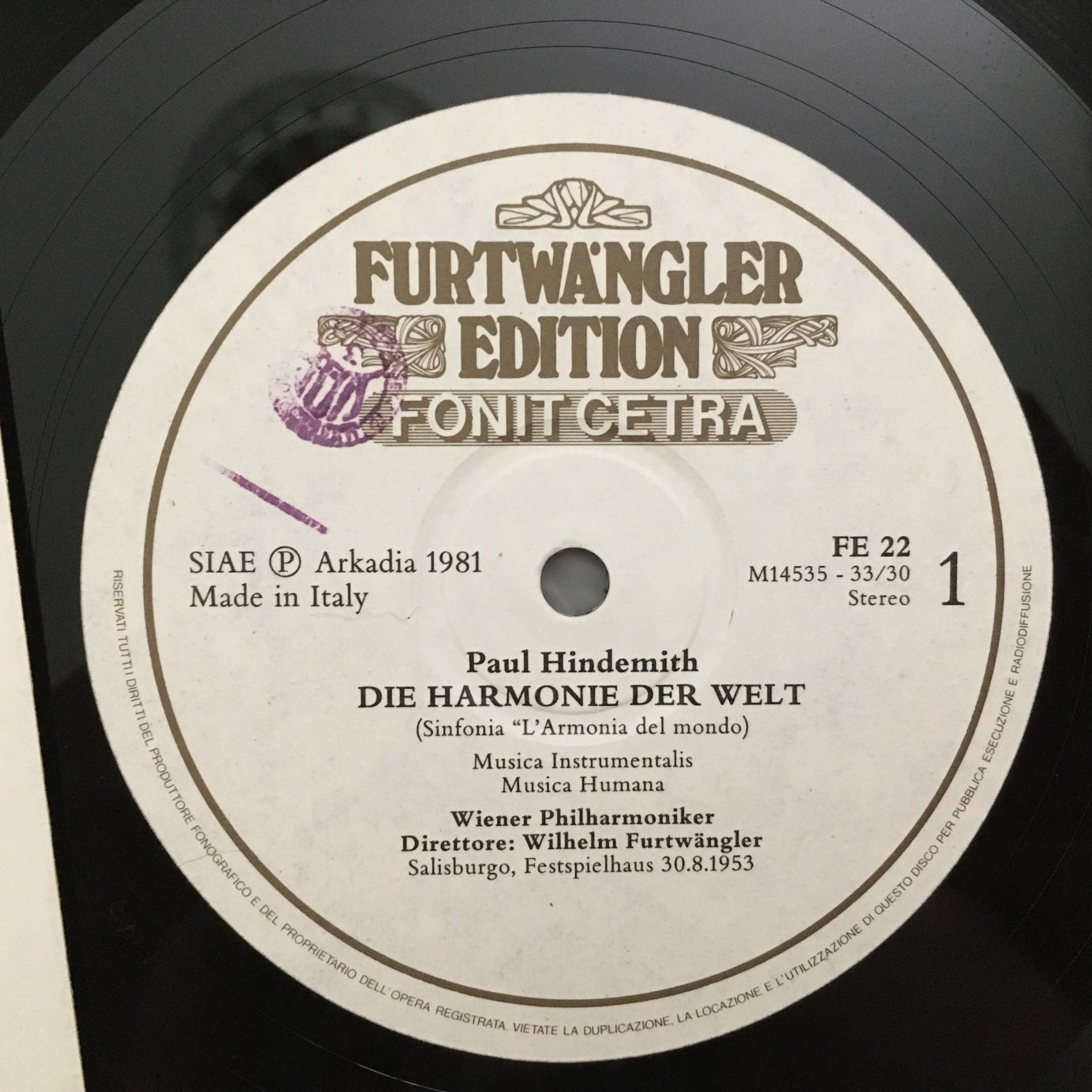 Q875 Hindemith Symphony Concerto Furtwängler VPO BPO Fonit Cetra FE 22 Stereo