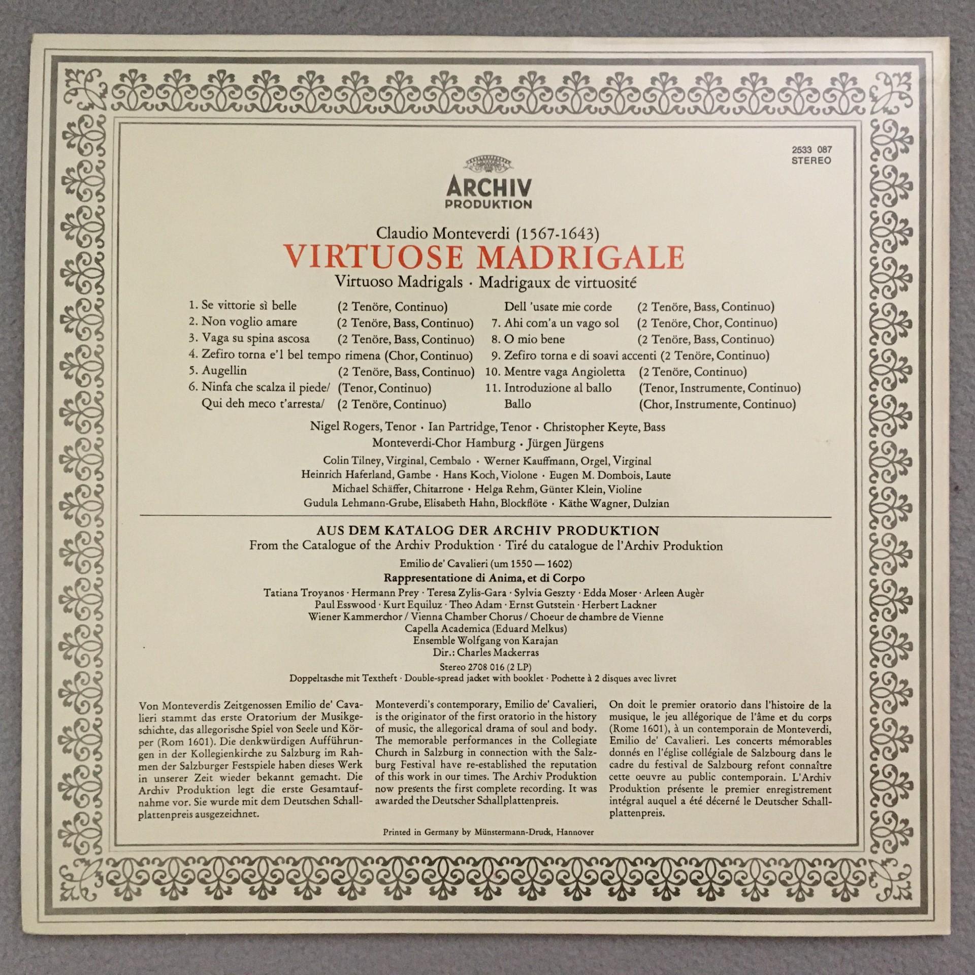 Q882 Monteverdi Virtuoso Madrigals Rogers Partridge DGG Archiv 2533 087 Stereo