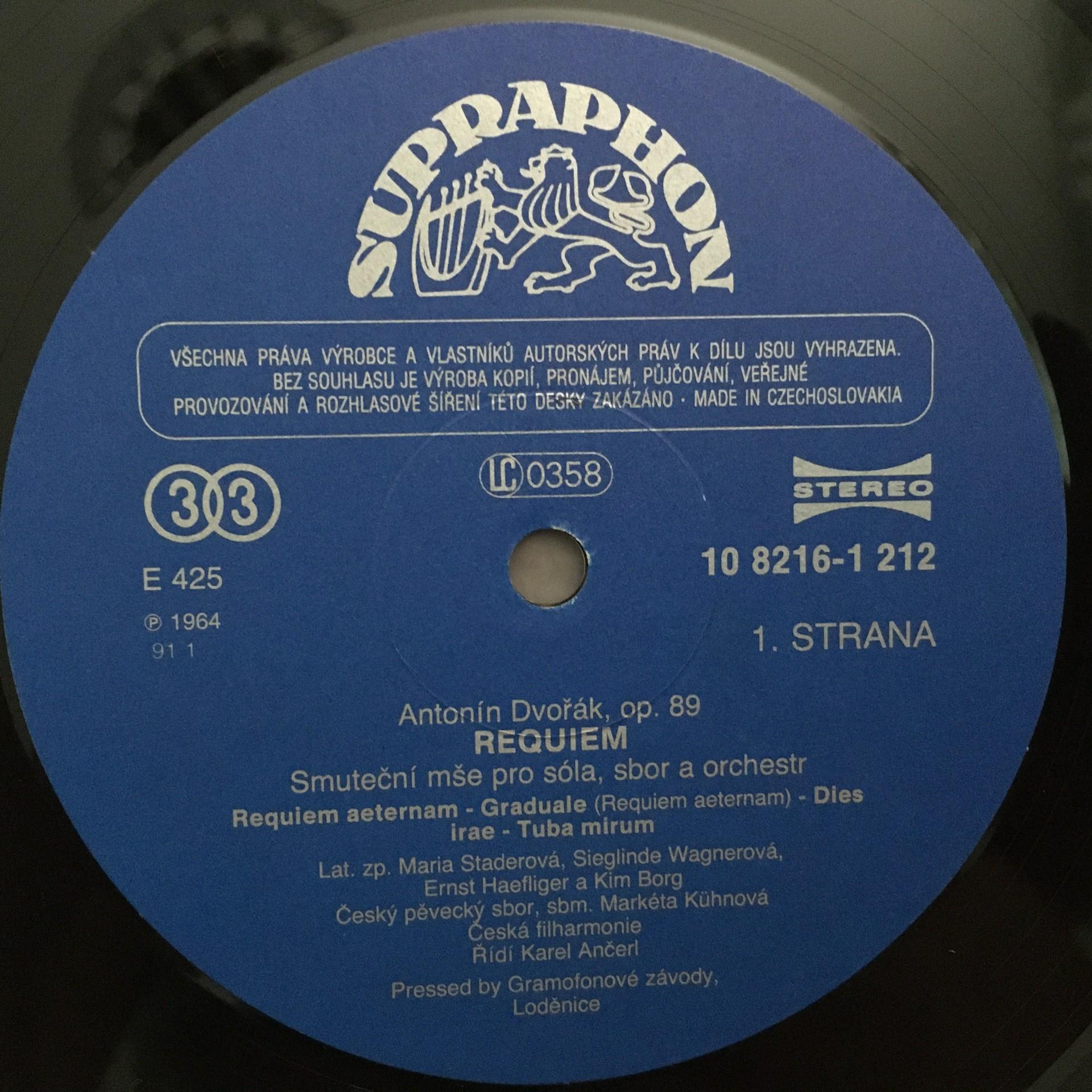 Q886 Dvorak Requiem Stader Häfliger Ancerl 2LP Supraphon 1112 8216-17 G Stereo