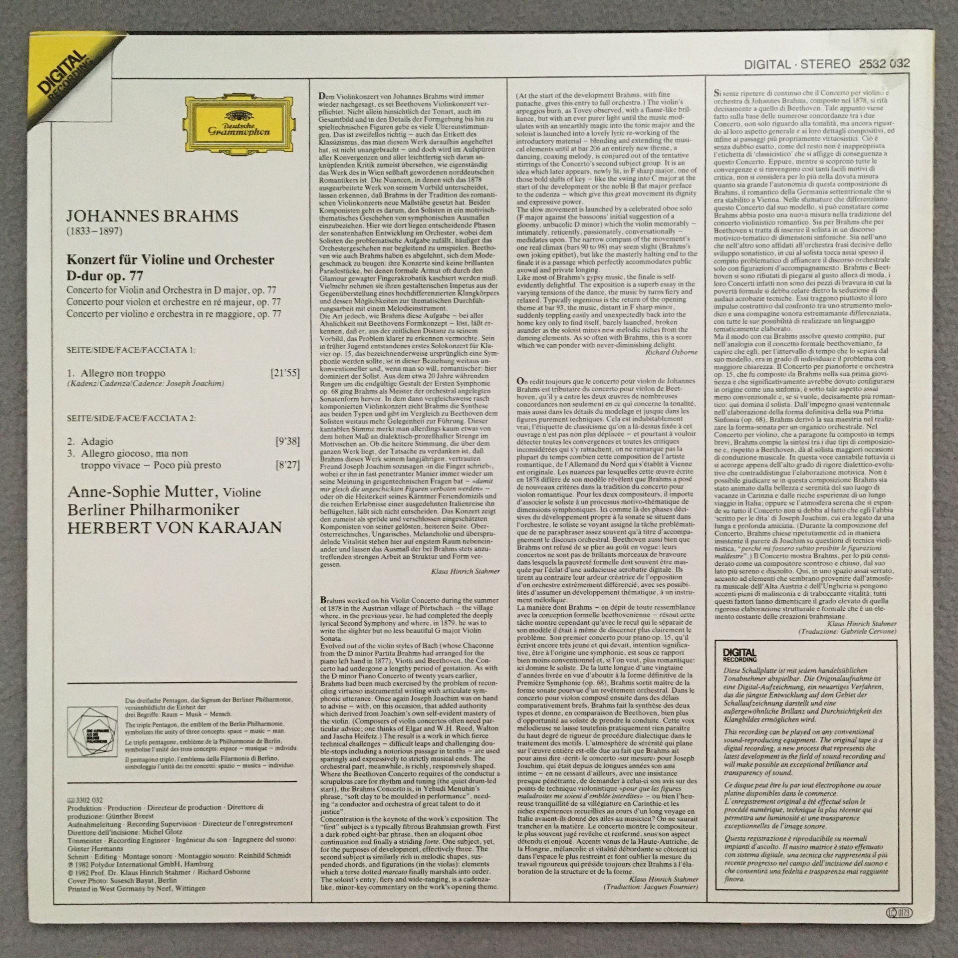 Q890 Brahms Violin Concerto Mutter Karajan BPO DGG 2532 032 Digital Stereo