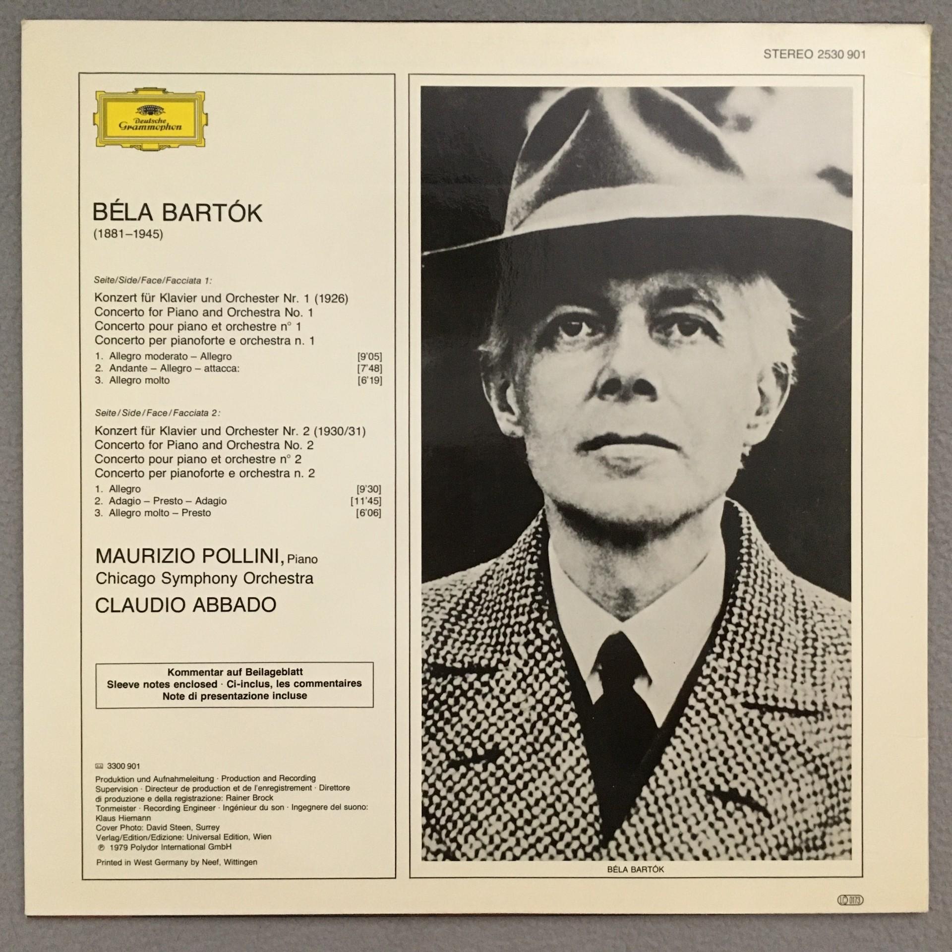 Q892 Bartok Piano Concertos Pollini Abbado DGG 2530 901 Stereo