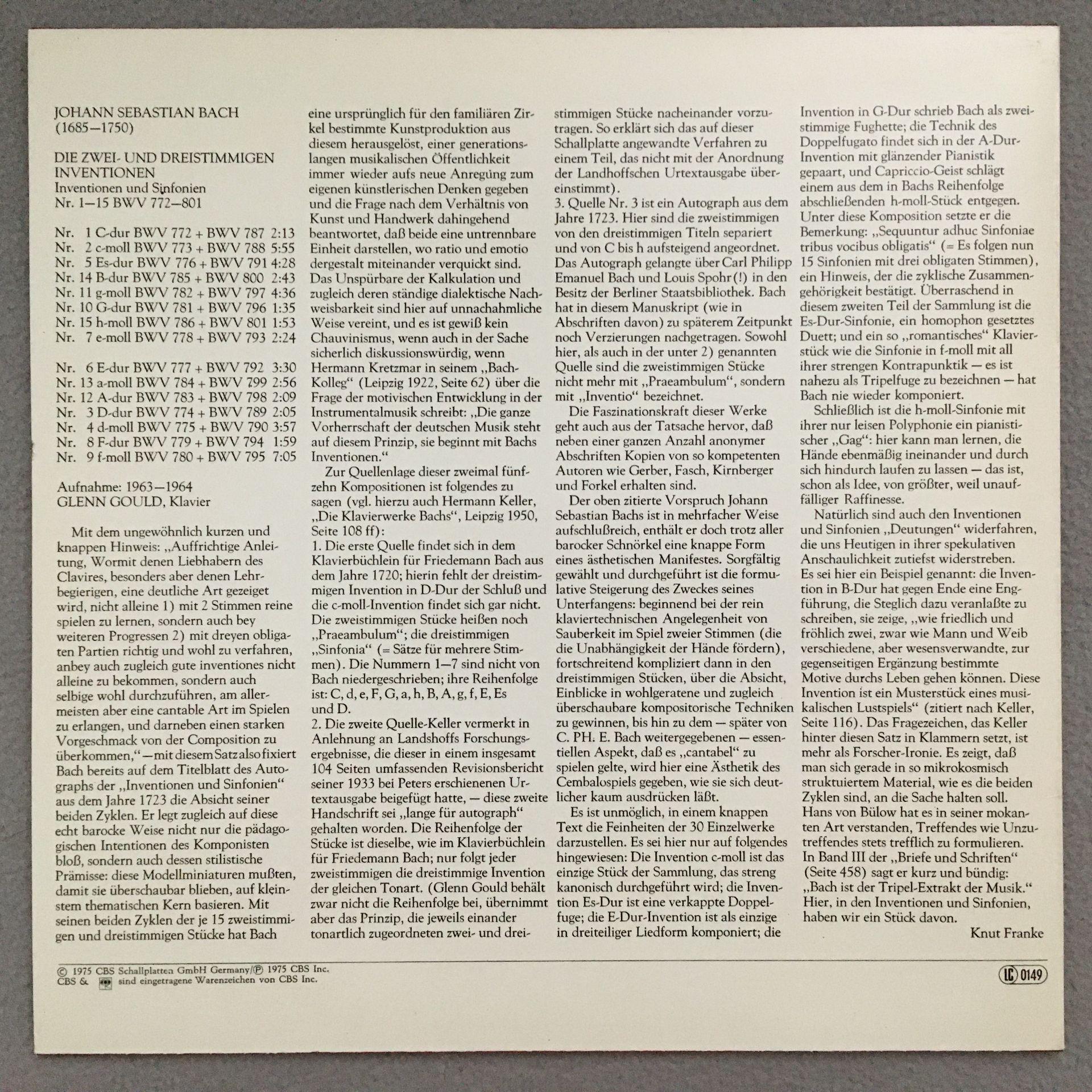 Q896 Bach Inventions and Symphonies No.1-15 Gould CBS 61 601 Stereo