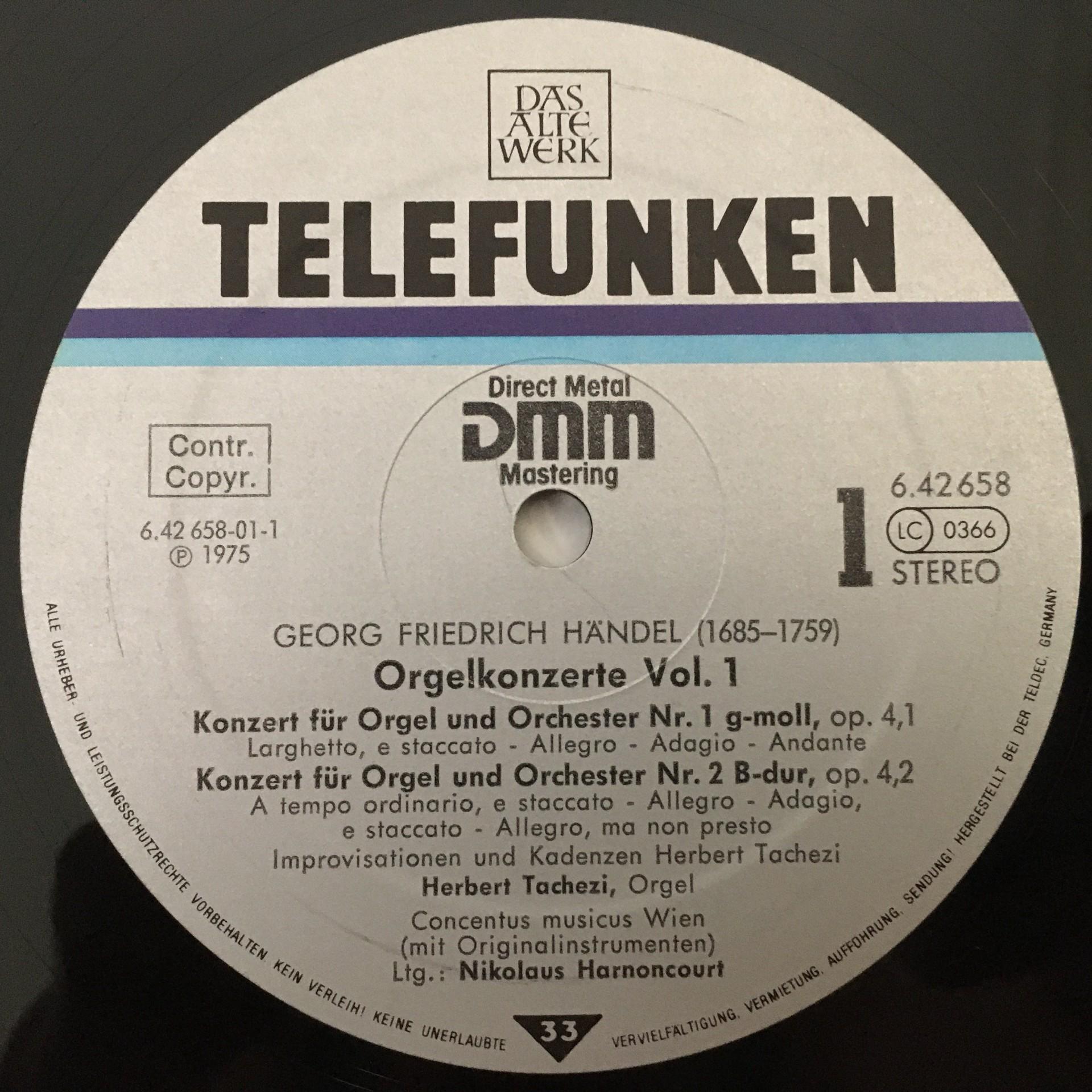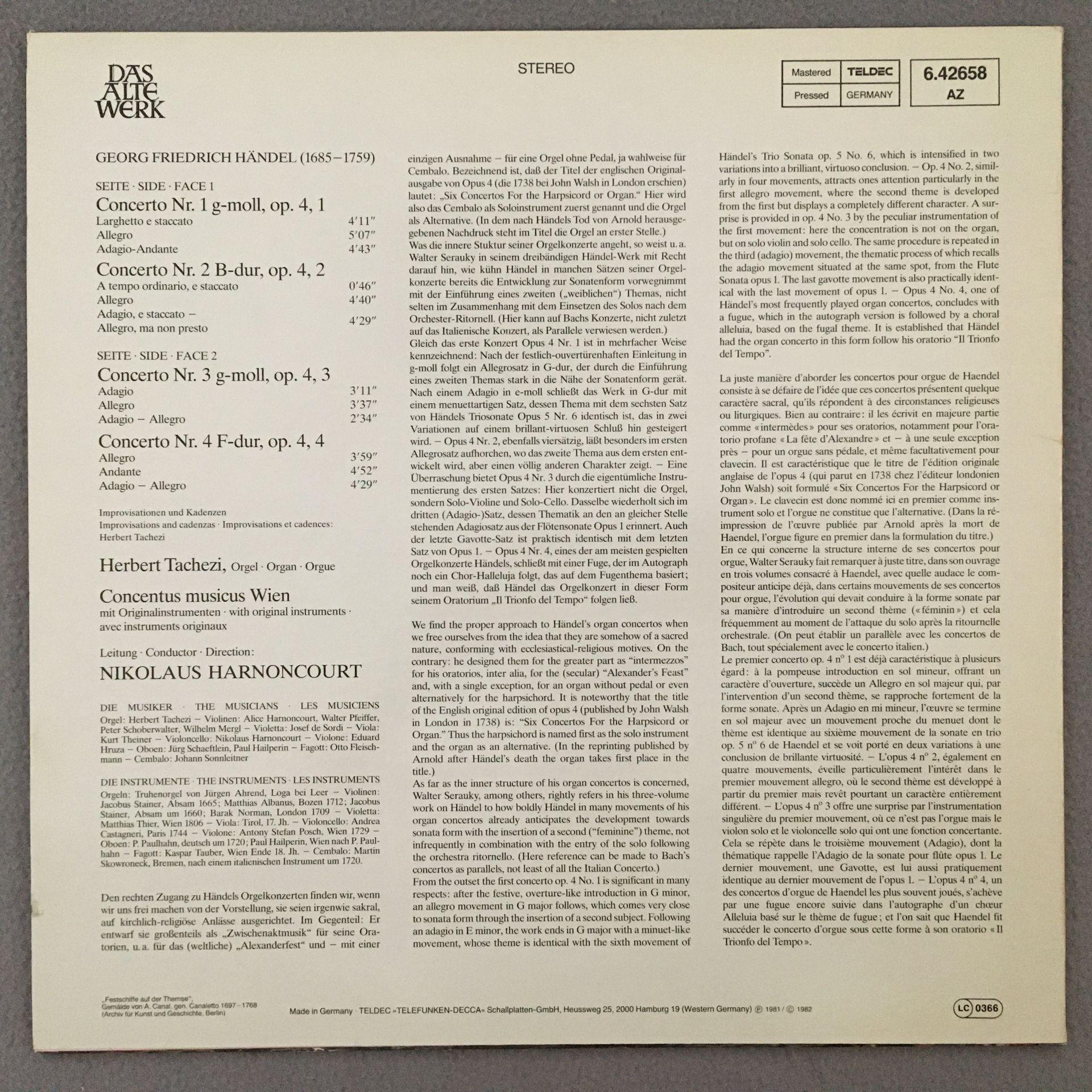 Q899 Handel Organ Concertos Tachezi Harnoncourt Telefunken 6.42658 AZ Stereo