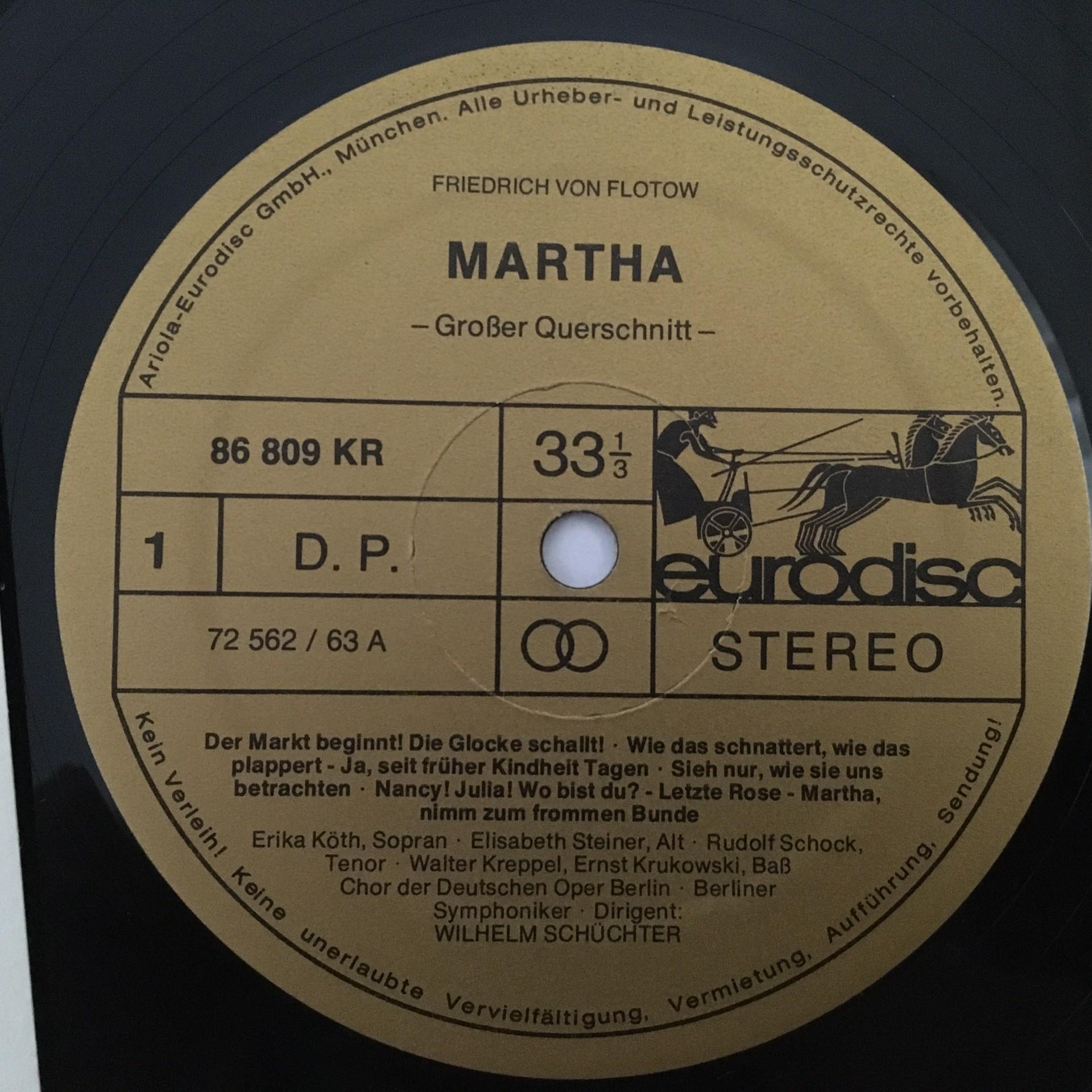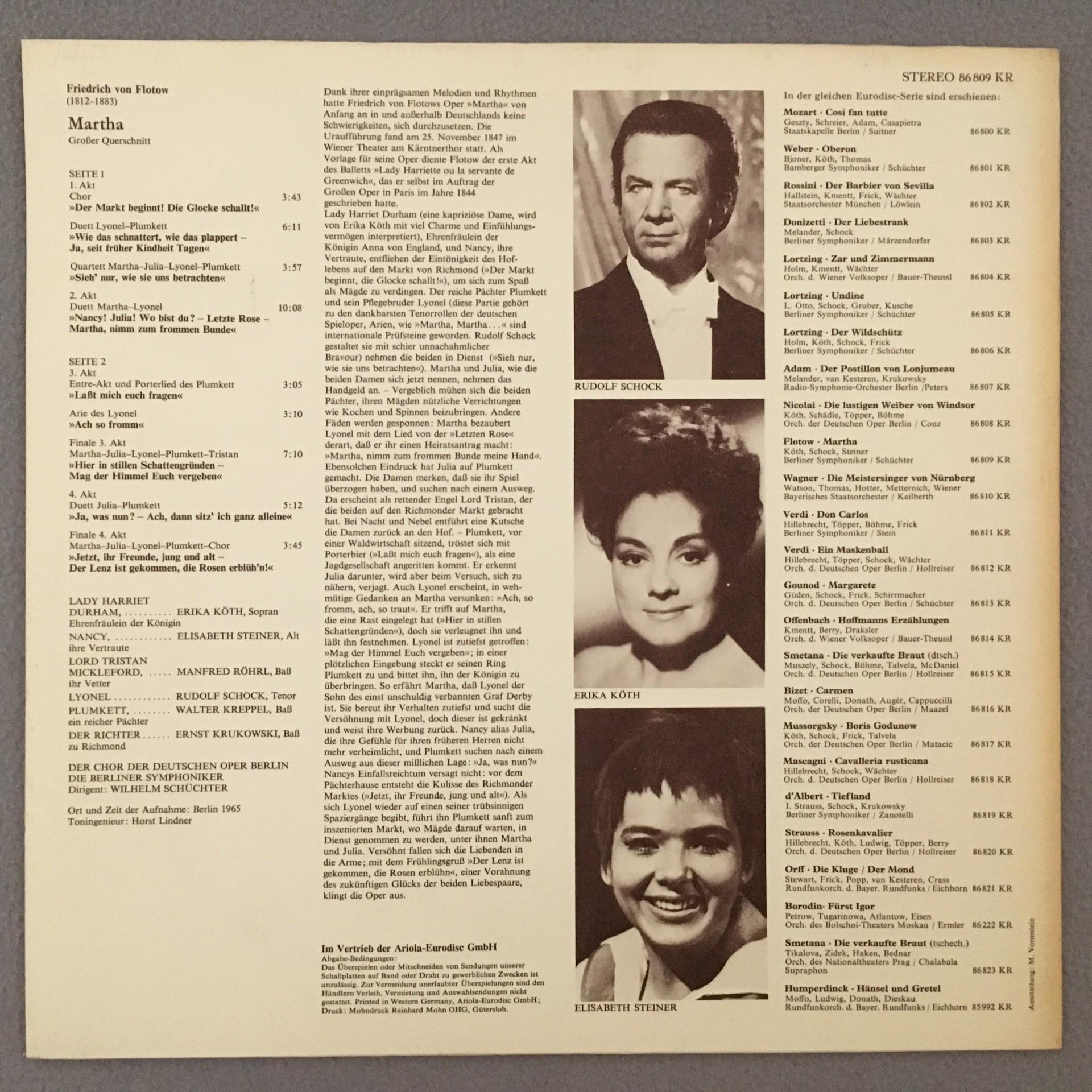 Q900 Flotow Martha Köth Schock Schüchter Eurodisc 86 809 KR Stereo