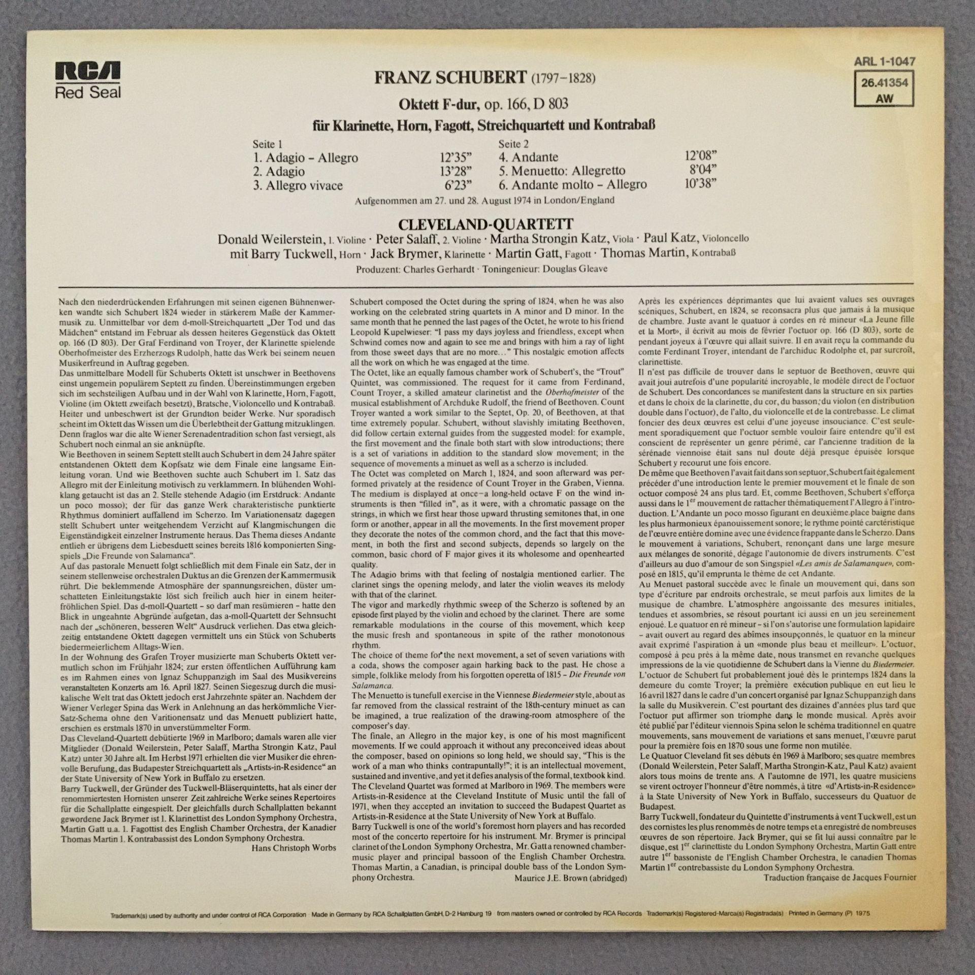 Q908 Schubert Octet for Strings & Winds Tuckwell Brymer RCA 26.41354 AW Stereo
