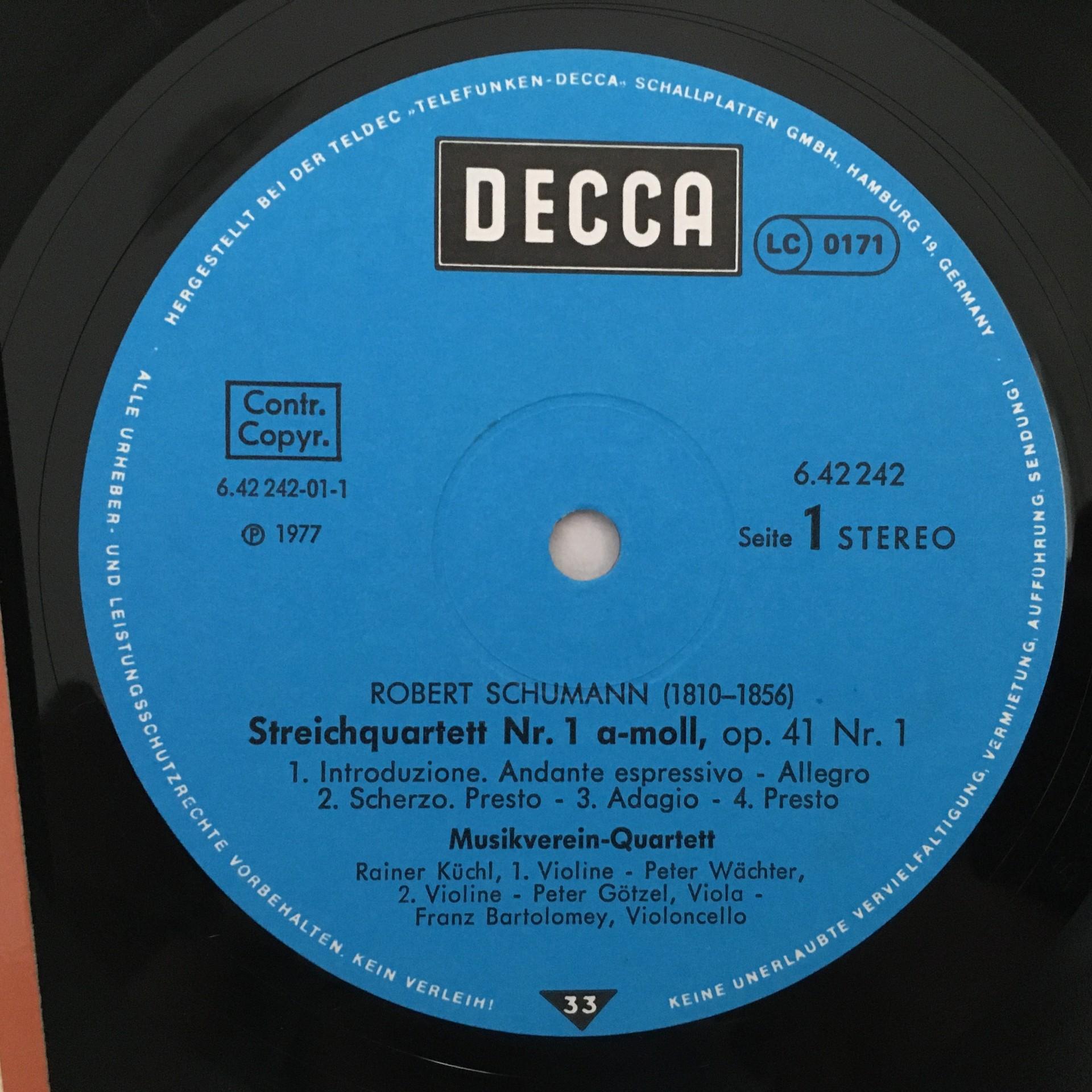 Q914 Schumann Brahms String Quartets Musikverein Quartett DECCA 6.42242 Stereo