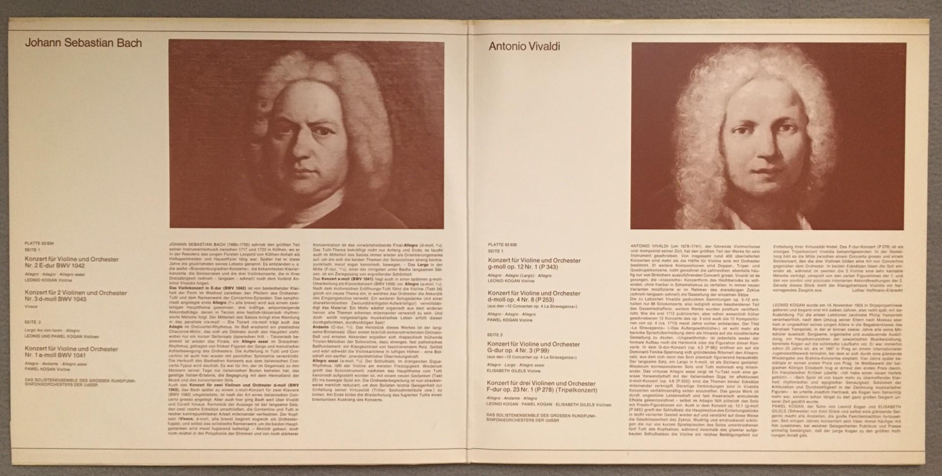 Q924 Bach Vivaldi Violin Concertos Gilels L. & P. Kogan 2LP Eurodisc 62633 Ster