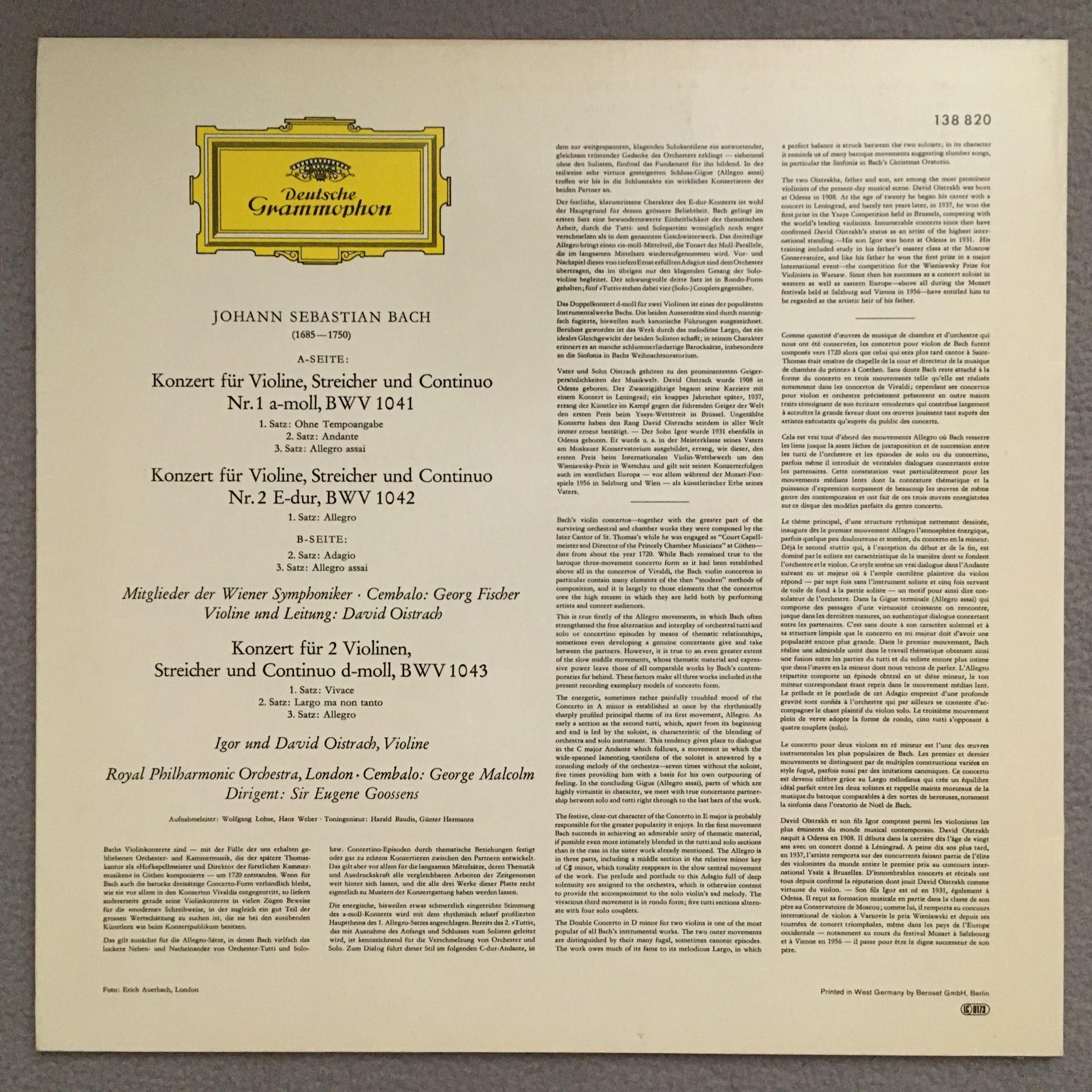 Q928 Bach Violin Concertos I. & D. Oistrakh Malcolm Gossens DGG 138 820 Stereo