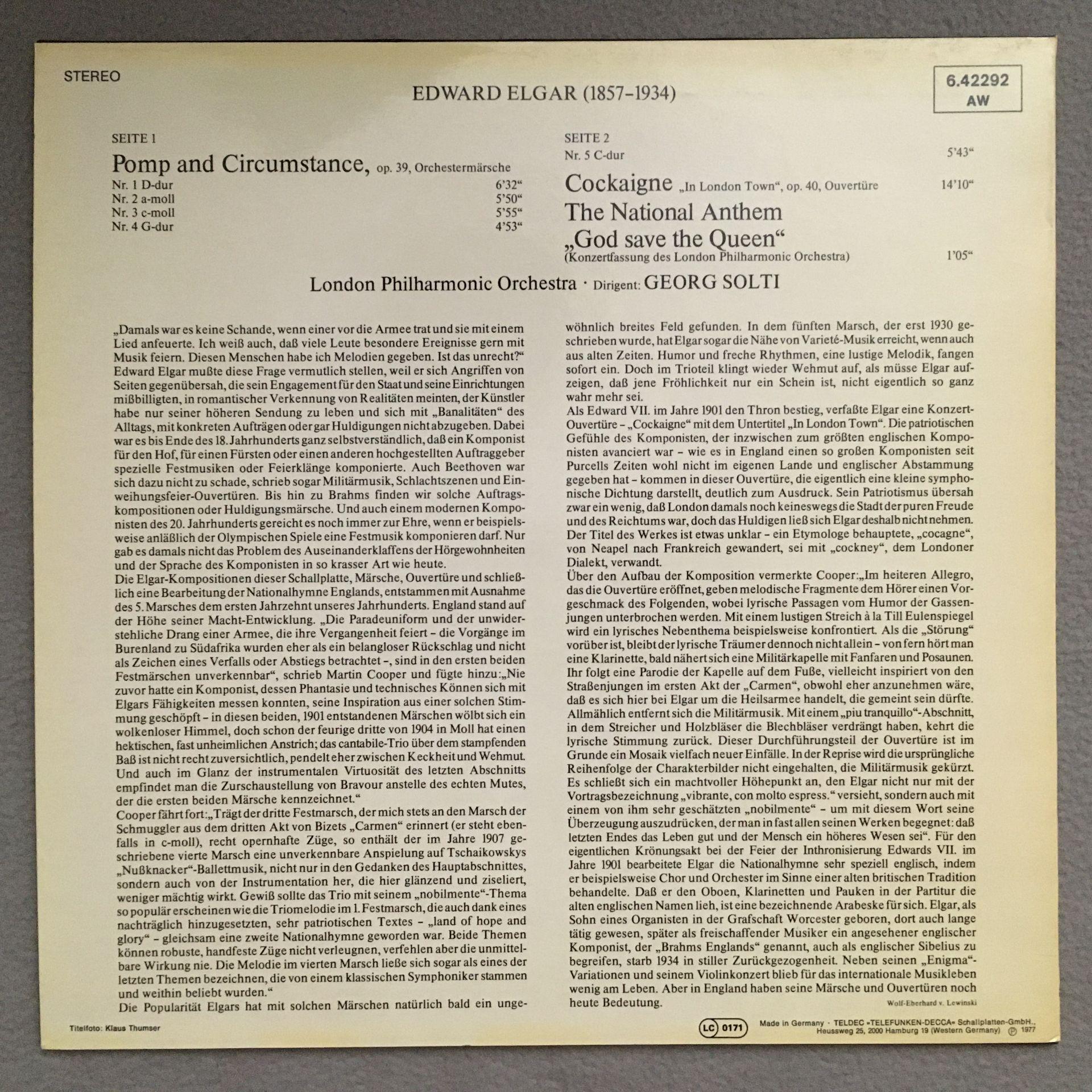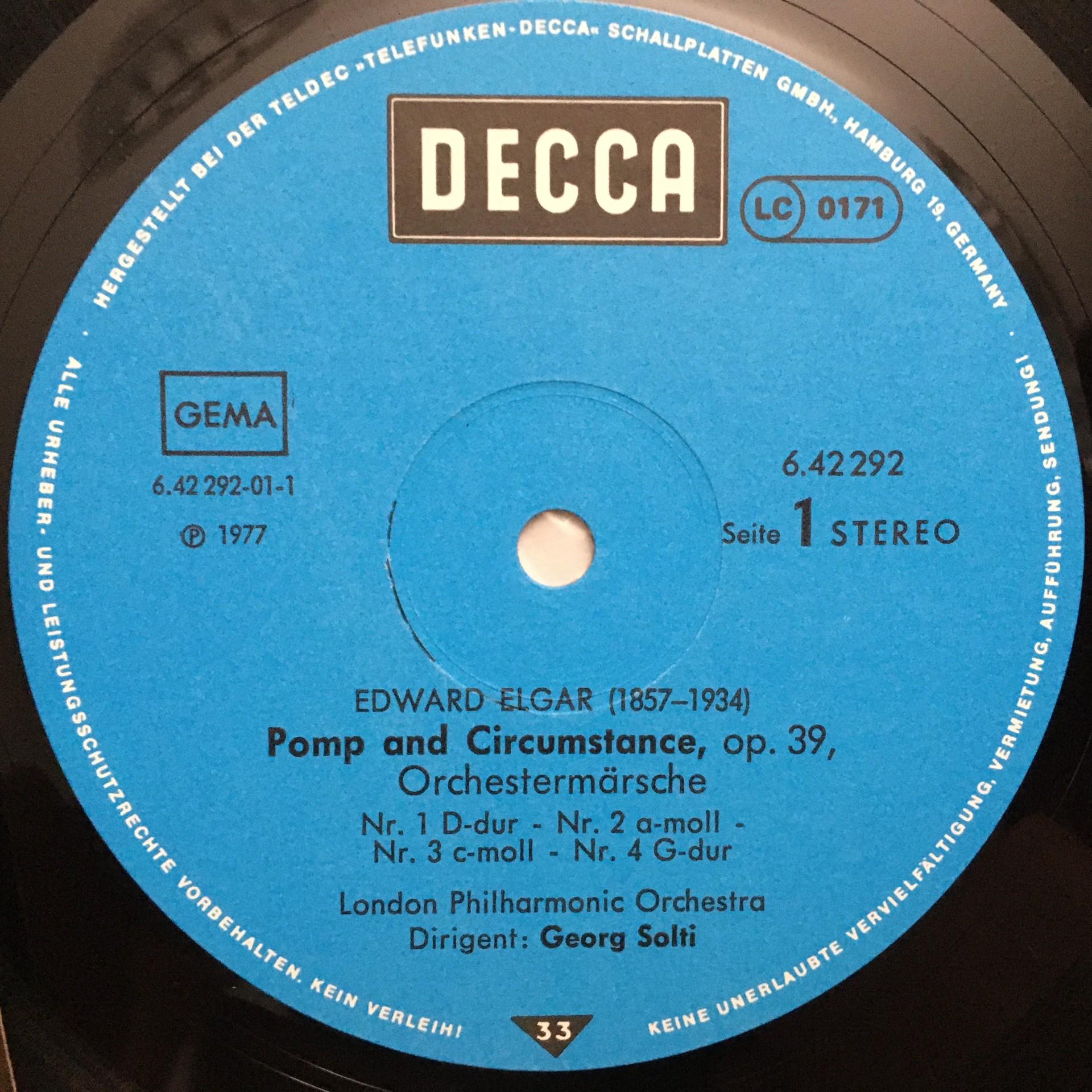 Q943 Elgar Pomp & Circumstance Cockaigne Solti LPO DECCA 6.42292 AW Stereo